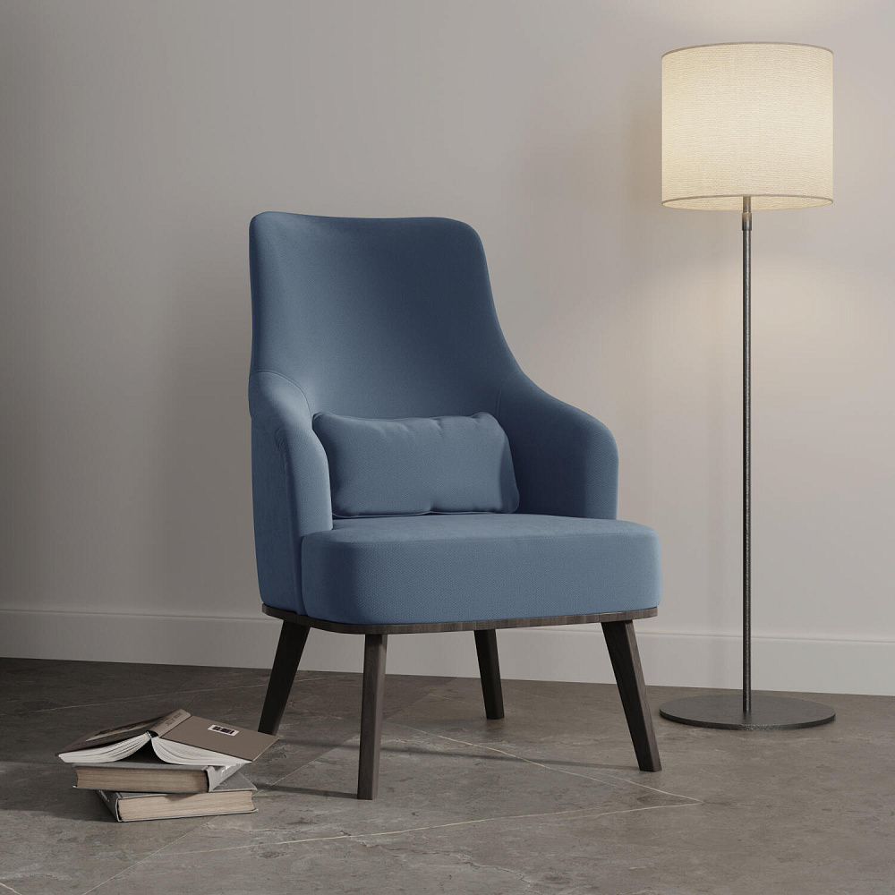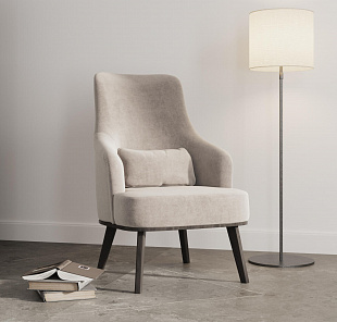 Кресло «Ноа» — минималистичная модель идеально подойдет для создания уютной зоны отдыха. Кресло в скандинавском стиле выделяется высокой спинкой, плавно перетекающей в подлокотники. Лаконичный образ завершает деревянное основание с тонкими опорами. Небольшая декоративная подушка поможет скорректировать глубину посадки для более комфортного отдыха.