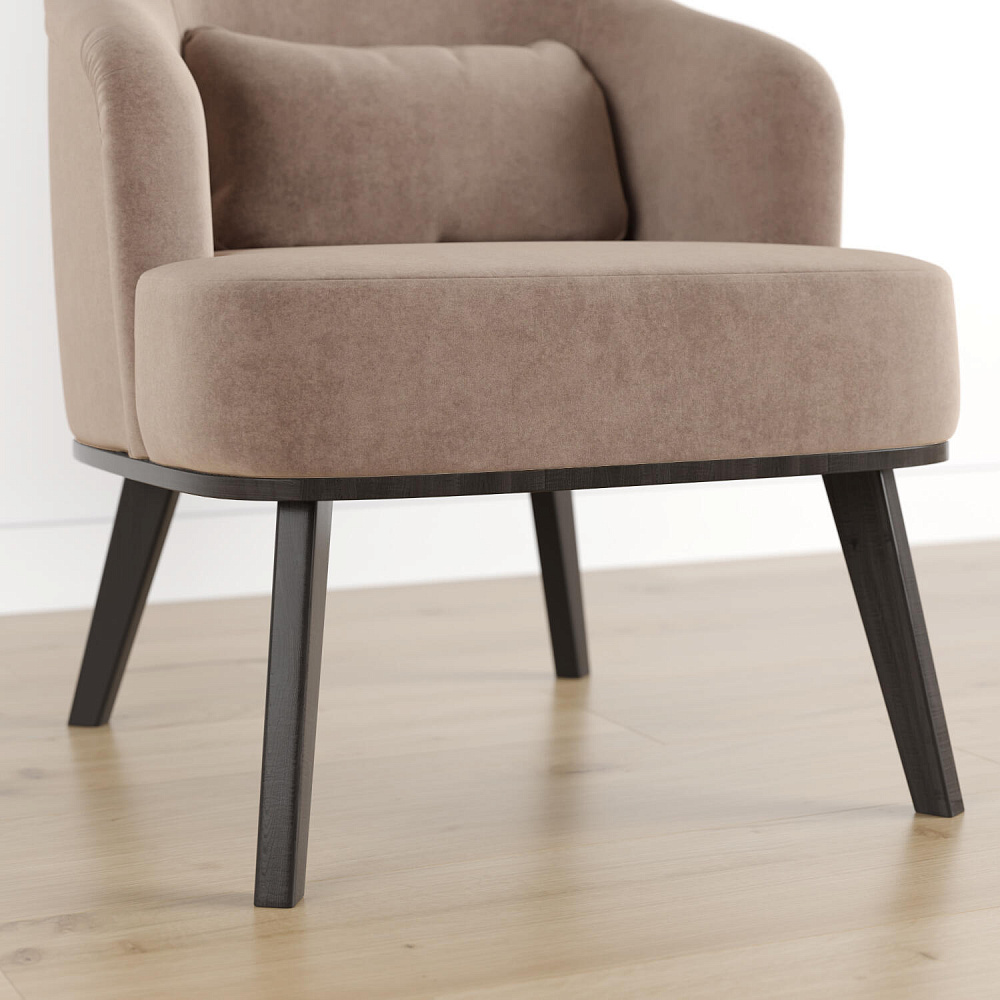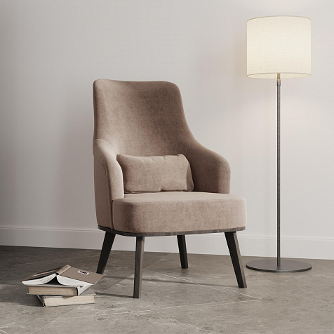 Кресло «Ноа» — минималистичная модель идеально подойдет для создания уютной зоны отдыха. Кресло в скандинавском стиле выделяется высокой спинкой, плавно перетекающей в подлокотники. Лаконичный образ завершает деревянное основание с тонкими опорами. Небольшая декоративная подушка поможет скорректировать глубину посадки для более комфортного отдыха.