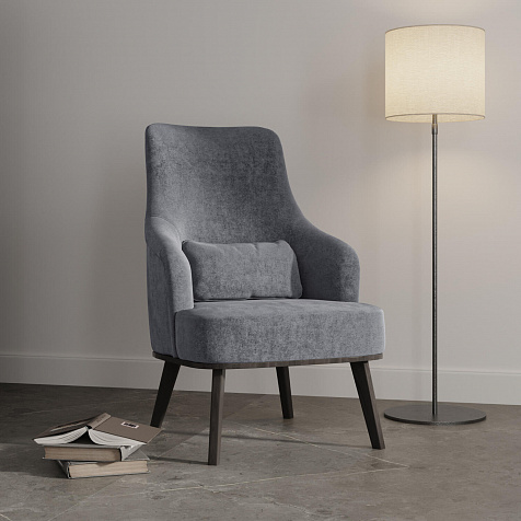 Кресло «Ноа» — минималистичная модель идеально подойдет для создания уютной зоны отдыха. Кресло в скандинавском стиле выделяется высокой спинкой, плавно перетекающей в подлокотники. Лаконичный образ завершает деревянное основание с тонкими опорами. Небольшая декоративная подушка поможет скорректировать глубину посадки для более комфортного отдыха.