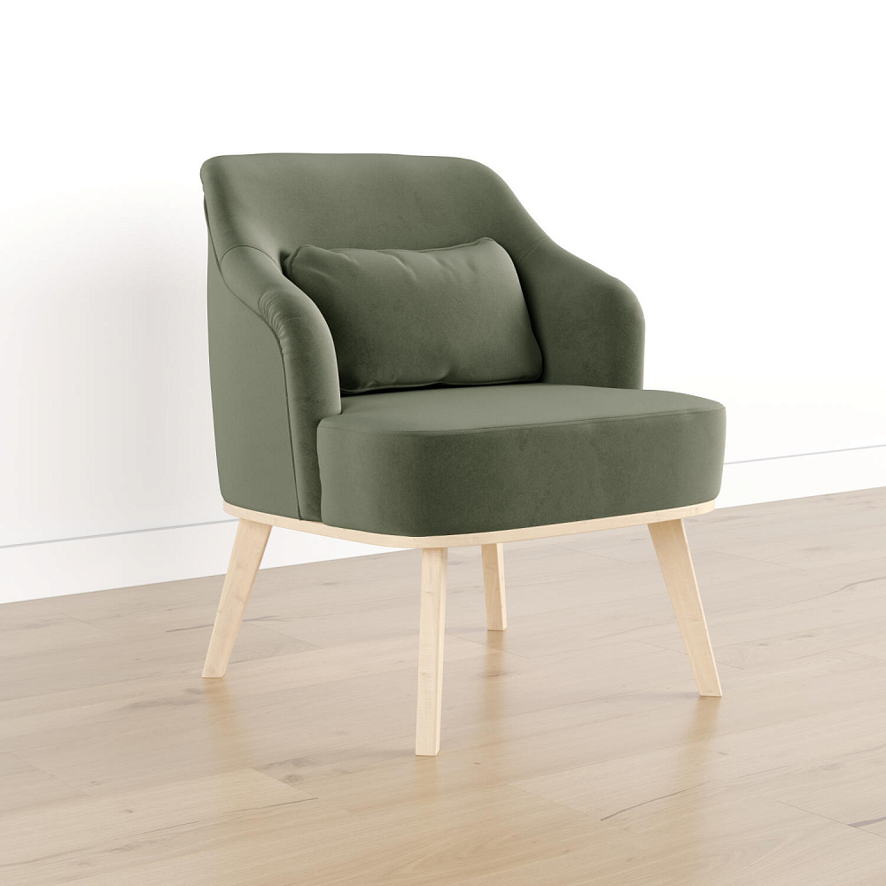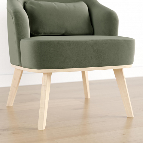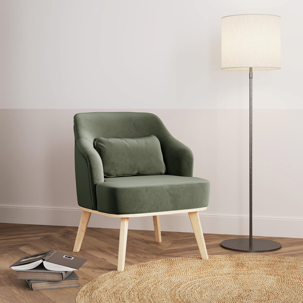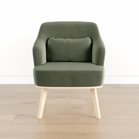 Кресло «Ноа» — минималистичная модель идеально подойдет для создания уютной зоны отдыха. Кресло в скандинавском стиле выделяется высокой спинкой, плавно перетекающей в подлокотники. Лаконичный образ завершает деревянное основание с тонкими опорами. Небольшая декоративная подушка поможет скорректировать глубину посадки для более комфортного отдыха.
