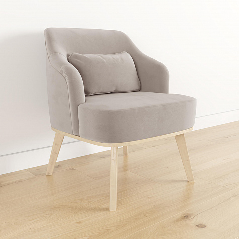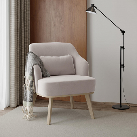 Кресло «Ноа» — минималистичная модель идеально подойдет для создания уютной зоны отдыха. Кресло в скандинавском стиле выделяется высокой спинкой, плавно перетекающей в подлокотники. Лаконичный образ завершает деревянное основание с тонкими опорами. Небольшая декоративная подушка поможет скорректировать глубину посадки для более комфортного отдыха.