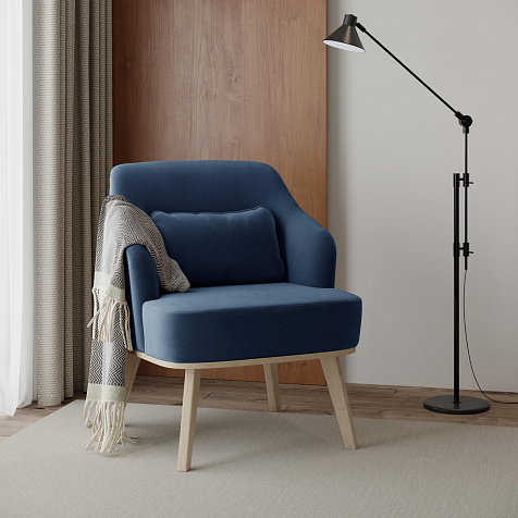 Кресло «Ноа» — минималистичная модель идеально подойдет для создания уютной зоны отдыха. Кресло в скандинавском стиле выделяется высокой спинкой, плавно перетекающей в подлокотники. Лаконичный образ завершает деревянное основание с тонкими опорами. Небольшая декоративная подушка поможет скорректировать глубину посадки для более комфортного отдыха.