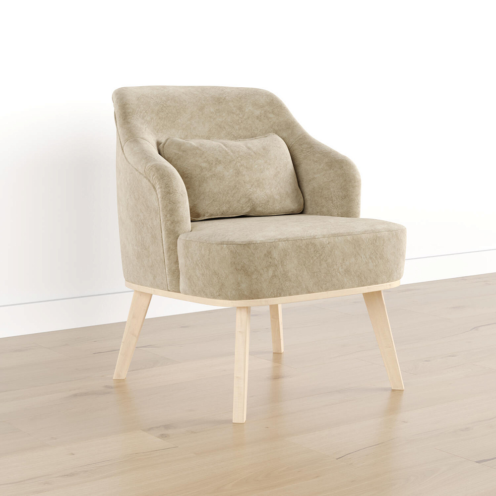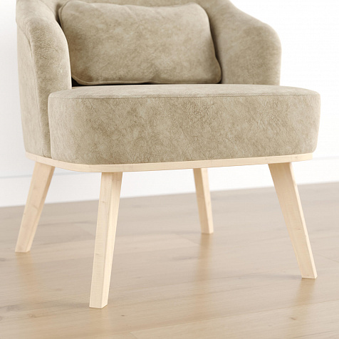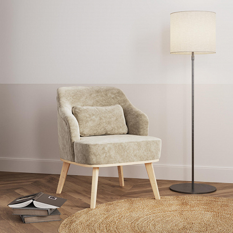 Кресло «Ноа» — минималистичная модель идеально подойдет для создания уютной зоны отдыха. Кресло в скандинавском стиле выделяется высокой спинкой, плавно перетекающей в подлокотники. Лаконичный образ завершает деревянное основание с тонкими опорами. Небольшая декоративная подушка поможет скорректировать глубину посадки для более комфортного отдыха.
