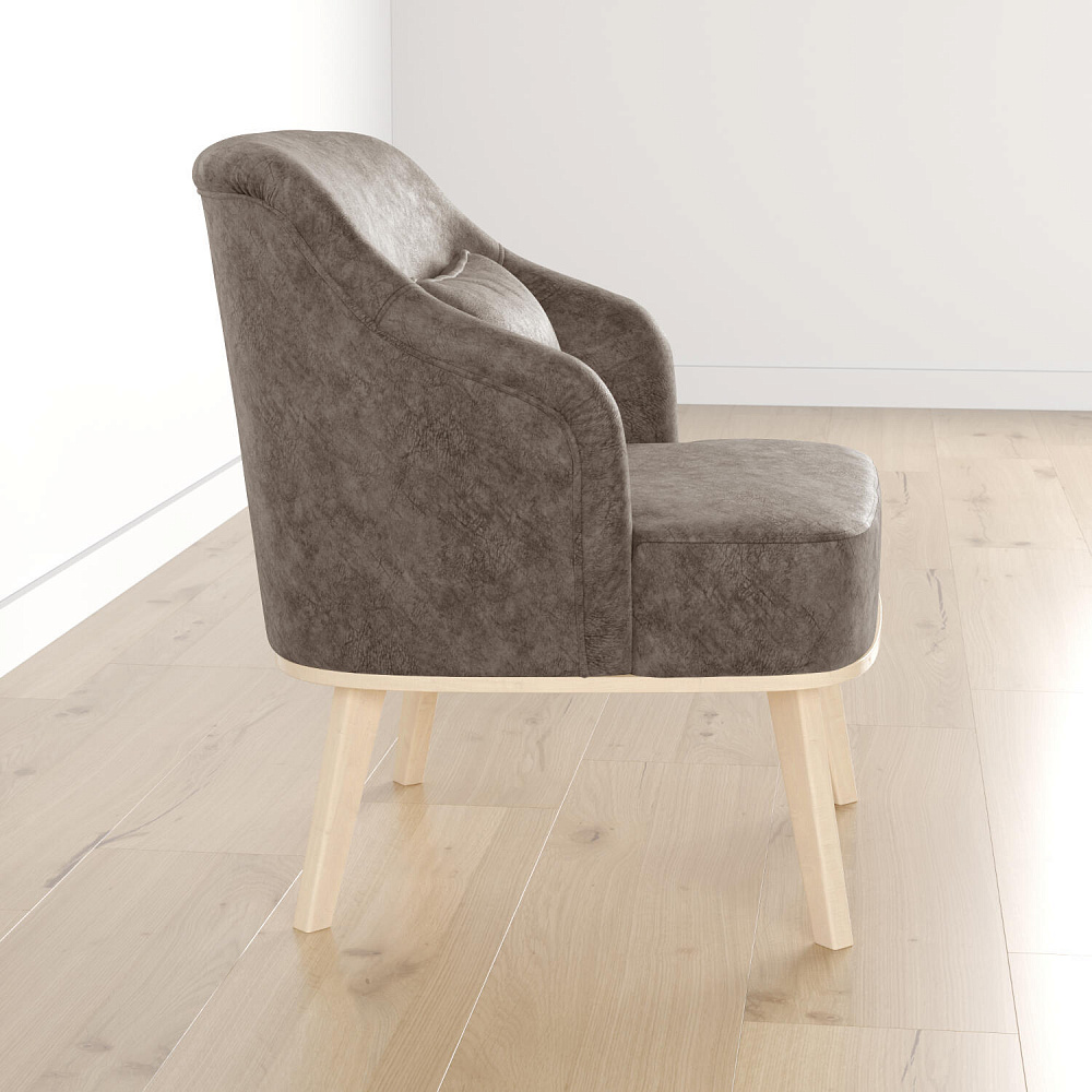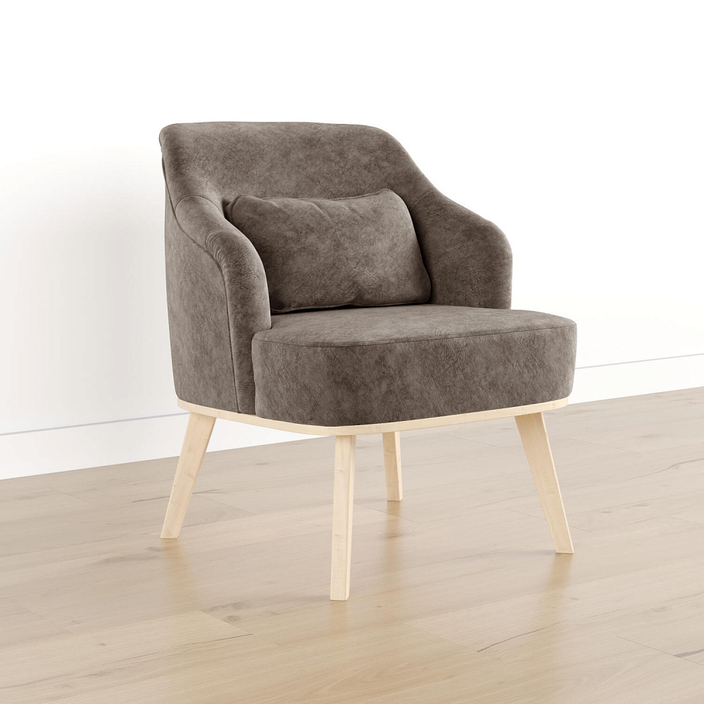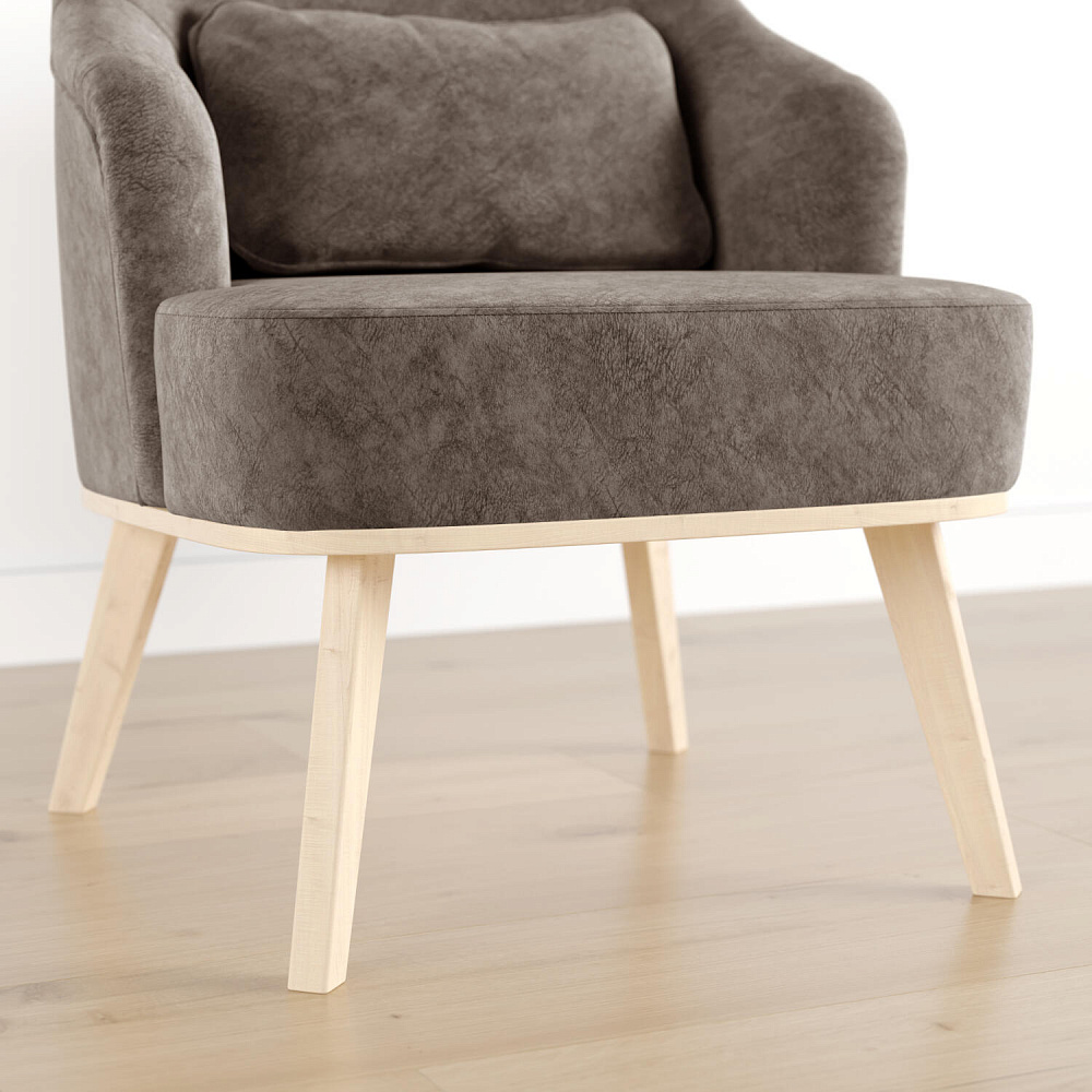 Кресло «Ноа» — минималистичная модель идеально подойдет для создания уютной зоны отдыха. Кресло в скандинавском стиле выделяется высокой спинкой, плавно перетекающей в подлокотники. Лаконичный образ завершает деревянное основание с тонкими опорами. Небольшая декоративная подушка поможет скорректировать глубину посадки для более комфортного отдыха.
