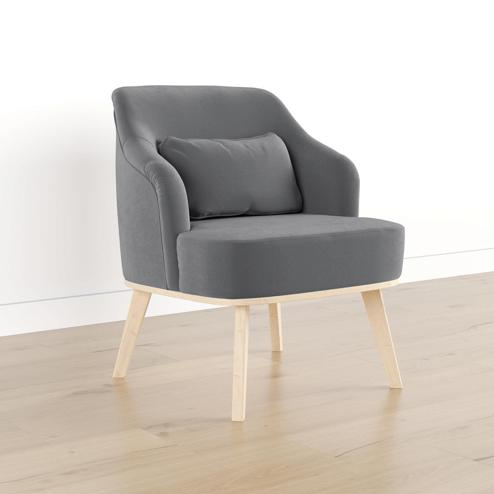 Кресло «Ноа» — минималистичная модель идеально подойдет для создания уютной зоны отдыха. Кресло в скандинавском стиле выделяется высокой спинкой, плавно перетекающей в подлокотники. Лаконичный образ завершает деревянное основание с тонкими опорами. Небольшая декоративная подушка поможет скорректировать глубину посадки для более комфортного отдыха.