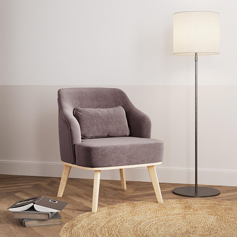 Кресло «Ноа» — минималистичная модель идеально подойдет для создания уютной зоны отдыха. Кресло в скандинавском стиле выделяется высокой спинкой, плавно перетекающей в подлокотники. Лаконичный образ завершает деревянное основание с тонкими опорами. Небольшая декоративная подушка поможет скорректировать глубину посадки для более комфортного отдыха.