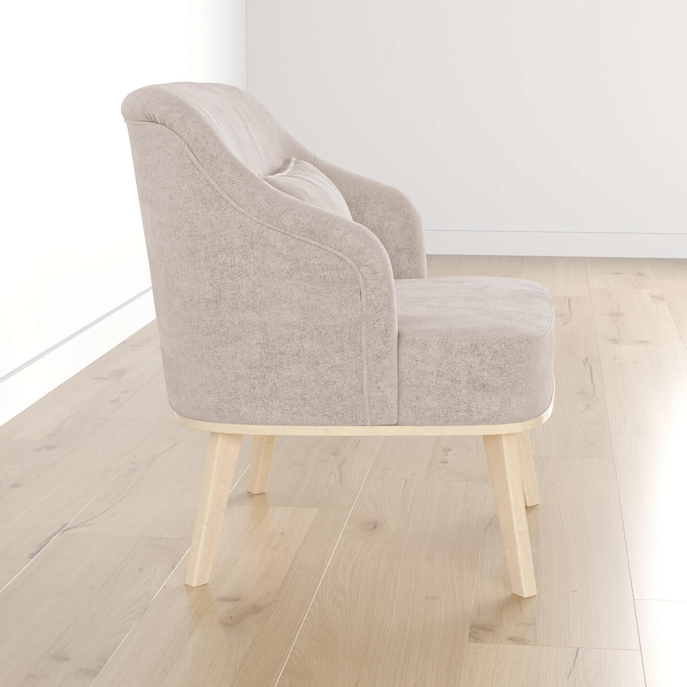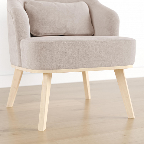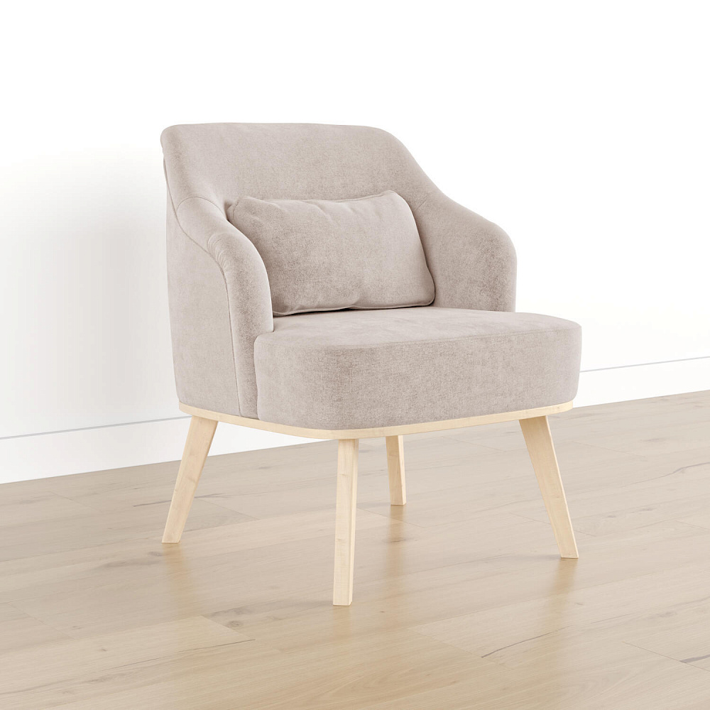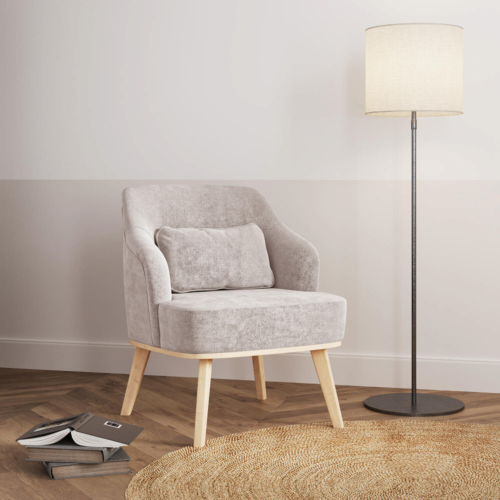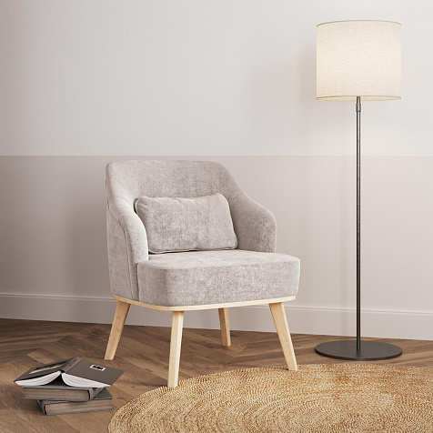 Кресло «Ноа» — минималистичная модель идеально подойдет для создания уютной зоны отдыха. Кресло в скандинавском стиле выделяется высокой спинкой, плавно перетекающей в подлокотники. Лаконичный образ завершает деревянное основание с тонкими опорами. Небольшая декоративная подушка поможет скорректировать глубину посадки для более комфортного отдыха.