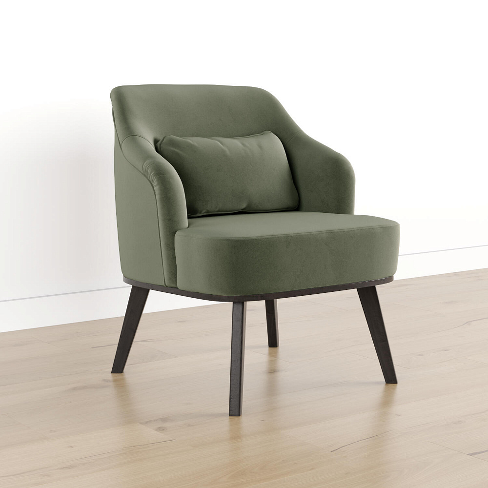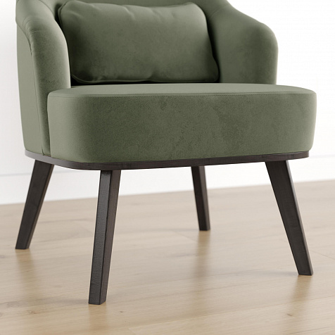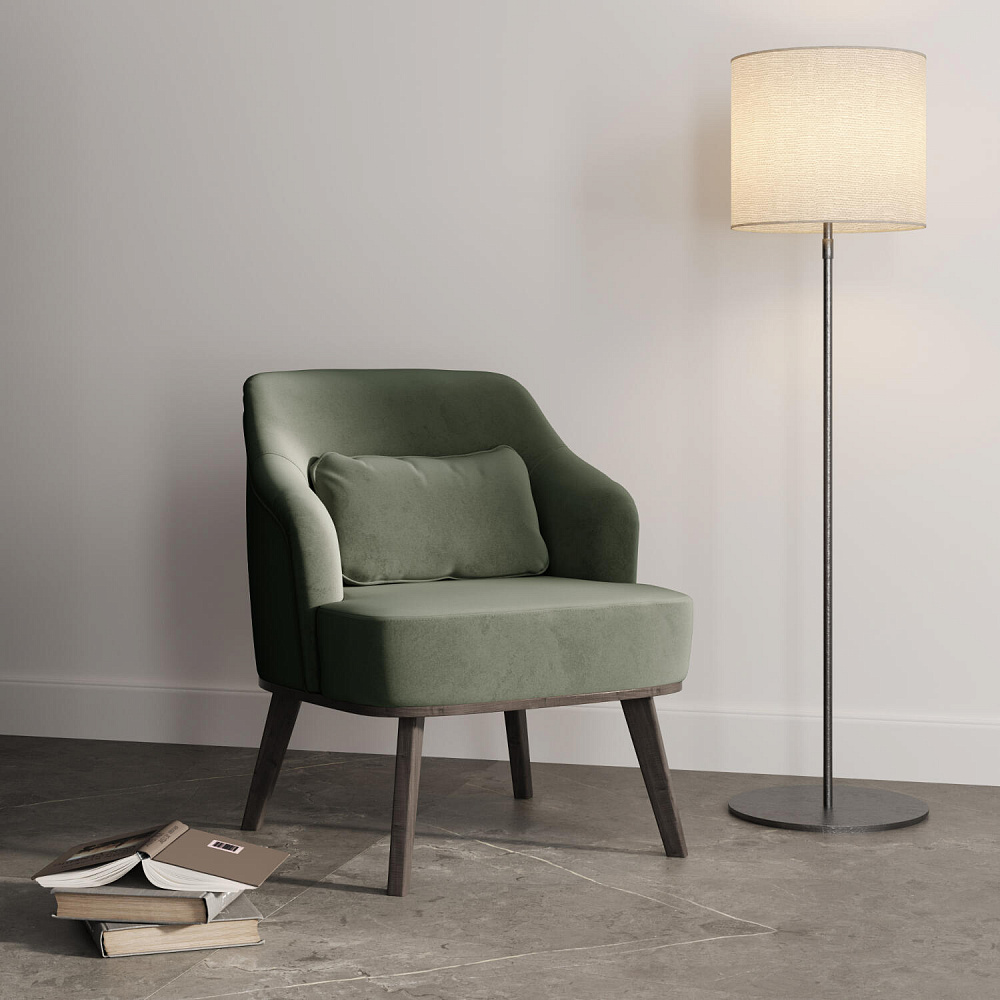 Кресло «Ноа» — минималистичная модель идеально подойдет для создания уютной зоны отдыха. Кресло в скандинавском стиле выделяется высокой спинкой, плавно перетекающей в подлокотники. Лаконичный образ завершает деревянное основание с тонкими опорами. Небольшая декоративная подушка поможет скорректировать глубину посадки для более комфортного отдыха.