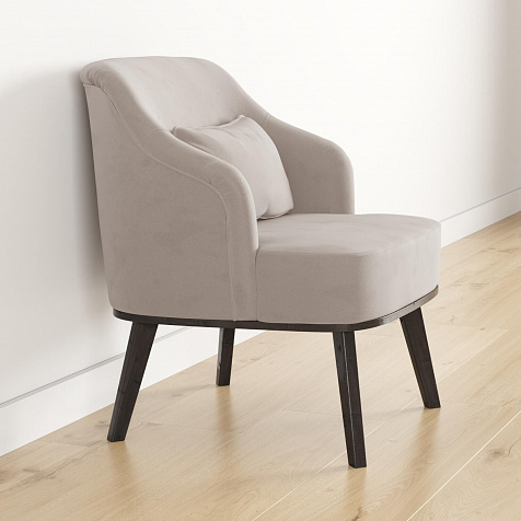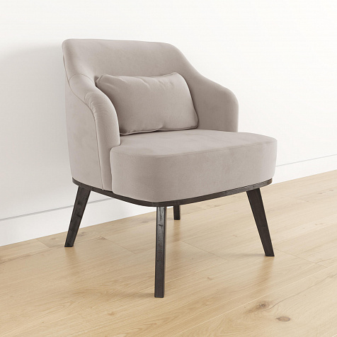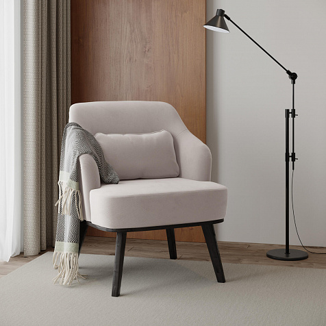 Кресло «Ноа» — минималистичная модель идеально подойдет для создания уютной зоны отдыха. Кресло в скандинавском стиле выделяется высокой спинкой, плавно перетекающей в подлокотники. Лаконичный образ завершает деревянное основание с тонкими опорами. Небольшая декоративная подушка поможет скорректировать глубину посадки для более комфортного отдыха.