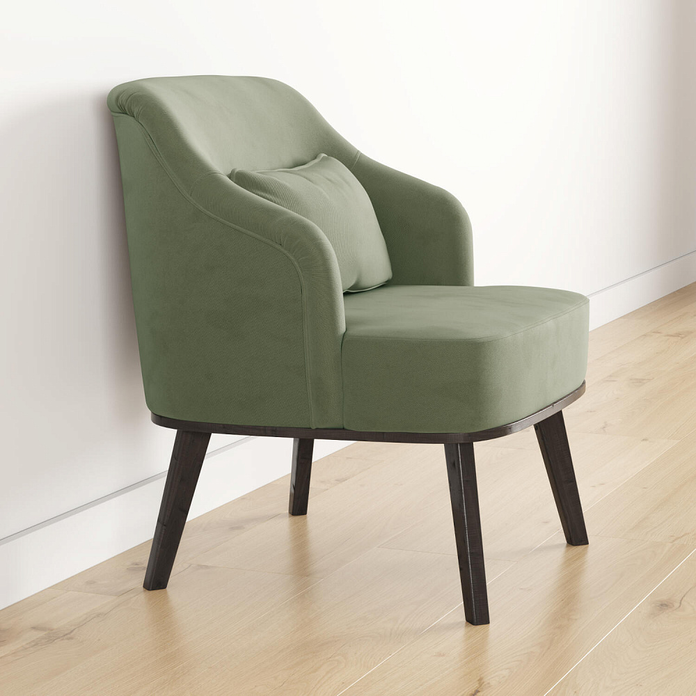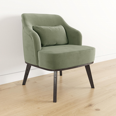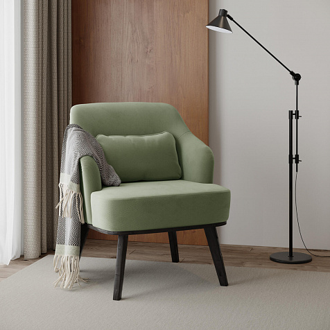 Кресло «Ноа» — минималистичная модель идеально подойдет для создания уютной зоны отдыха. Кресло в скандинавском стиле выделяется высокой спинкой, плавно перетекающей в подлокотники. Лаконичный образ завершает деревянное основание с тонкими опорами. Небольшая декоративная подушка поможет скорректировать глубину посадки для более комфортного отдыха.
