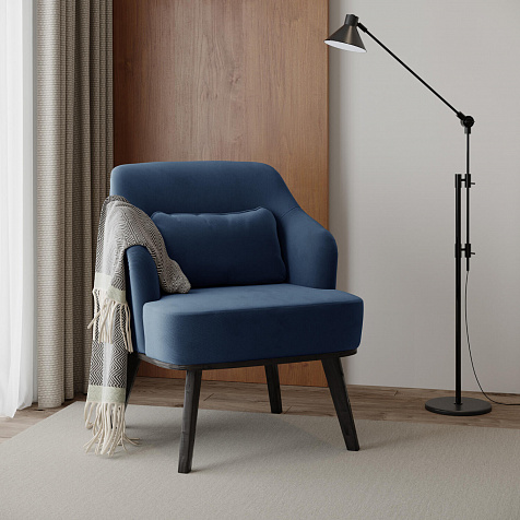 Кресло «Ноа» — минималистичная модель идеально подойдет для создания уютной зоны отдыха. Кресло в скандинавском стиле выделяется высокой спинкой, плавно перетекающей в подлокотники. Лаконичный образ завершает деревянное основание с тонкими опорами. Небольшая декоративная подушка поможет скорректировать глубину посадки для более комфортного отдыха.
