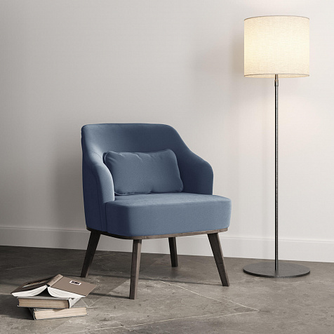 Кресло «Ноа» — минималистичная модель идеально подойдет для создания уютной зоны отдыха. Кресло в скандинавском стиле выделяется высокой спинкой, плавно перетекающей в подлокотники. Лаконичный образ завершает деревянное основание с тонкими опорами. Небольшая декоративная подушка поможет скорректировать глубину посадки для более комфортного отдыха.