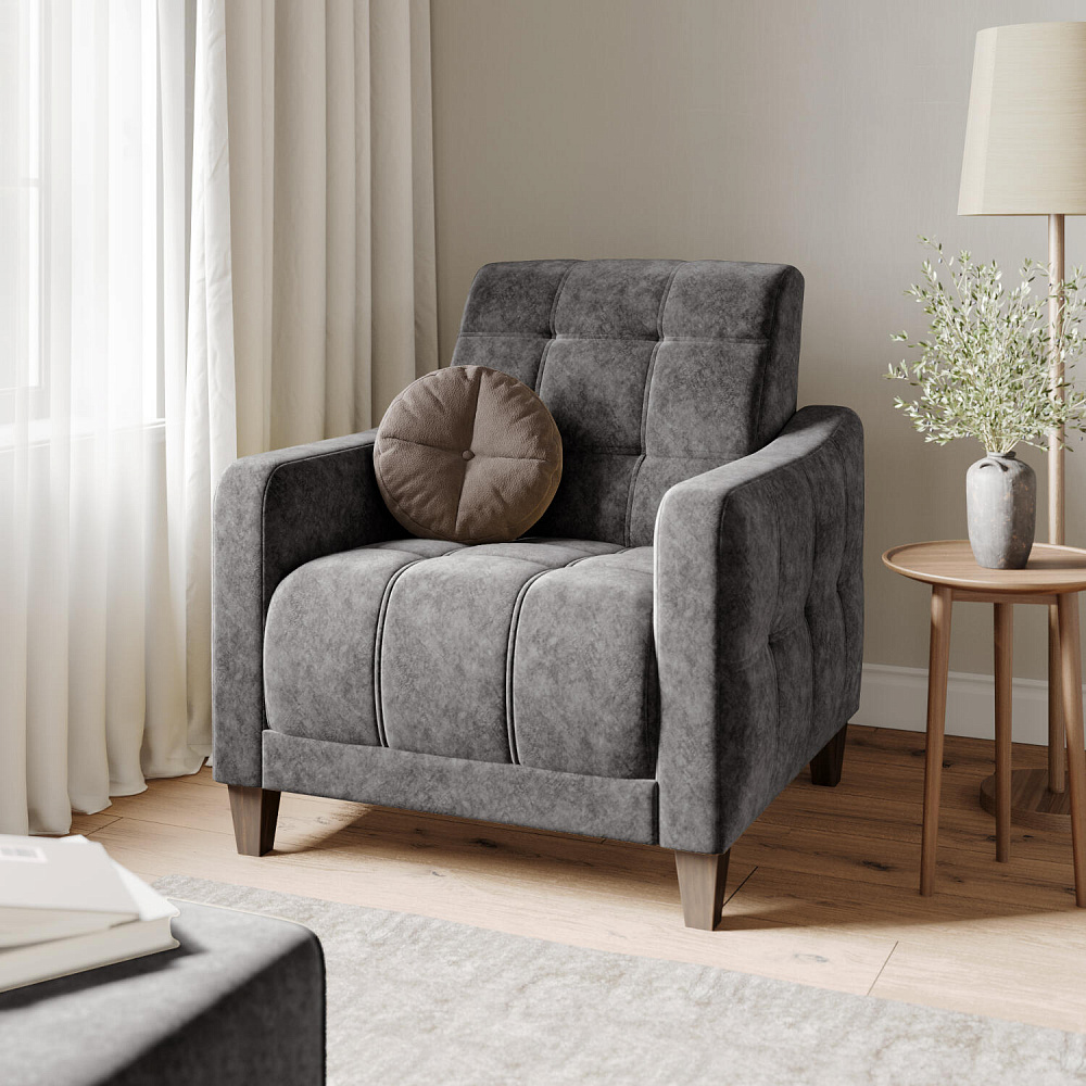 Возможность зонирования пространства. Задняя сторона спинки выполнена в основной обивочной ткани. Кресло будет аккуратно смотреться как у стены, так и в центре комнаты.