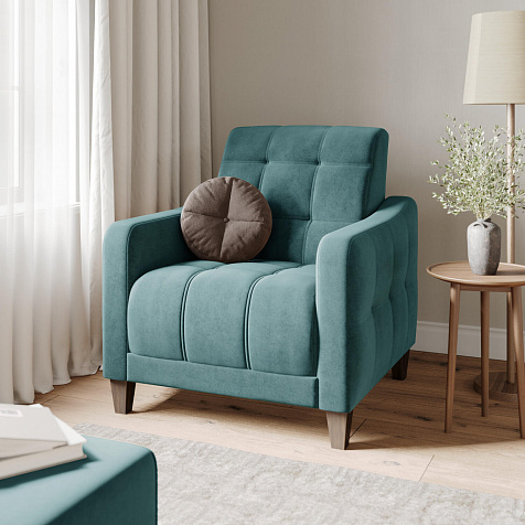 Возможность зонирования пространства. Задняя сторона спинки выполнена в основной обивочной ткани. Кресло будет аккуратно смотреться как у стены, так и в центре комнаты.