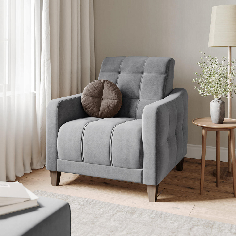 Кресло «Бремен» в популярном скандинавском стиле станет функциональным и стильным местом отдыха в доме. Кресло имеет удобную посадку и позволяет с комфортом разместиться в нем. Высокие опоры и приятная на ощупь однотонная обивка смотрятся эффектно.
