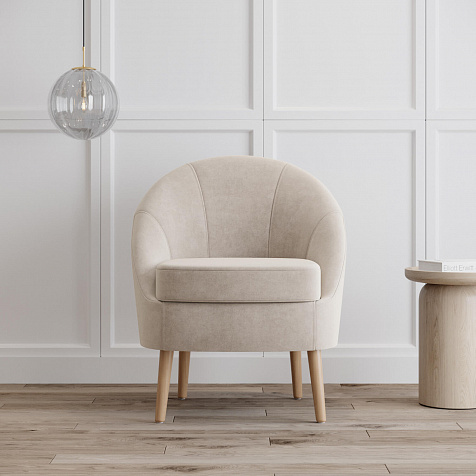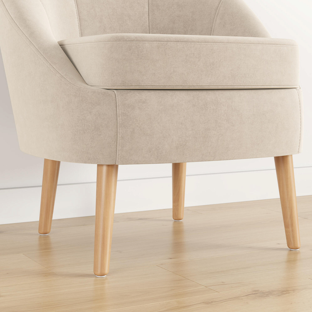 Высокие опоры из натурального дерева визуально облегчают конструкцию и упрощают процесс уборки. Под креслом легко пройдет любой робот-пылесос.