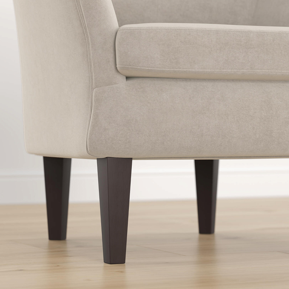 Обивка из велюра. Визуальная схожесть с замшевой текстурой смотрится элегантно. Ткань приятна на ощупь, устойчива к истиранию и механическим повреждениям.