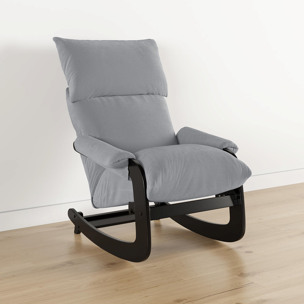 Мягкое кресло-качалка «Тиволи» с регулировкой угла наклона создаст уютное место для отдыха как в квартире, так и в загородном доме. Элегантный дизайн модели отличается объемными формами спинки и сиденья, компактными подлокотниками и лакированным каркасом. Обивка выполнена из плотного и приятного на ощупь велюра. За счет простого откидного механизма, спинка может принять полугоризонтальное положение для более комфортного отдыха.