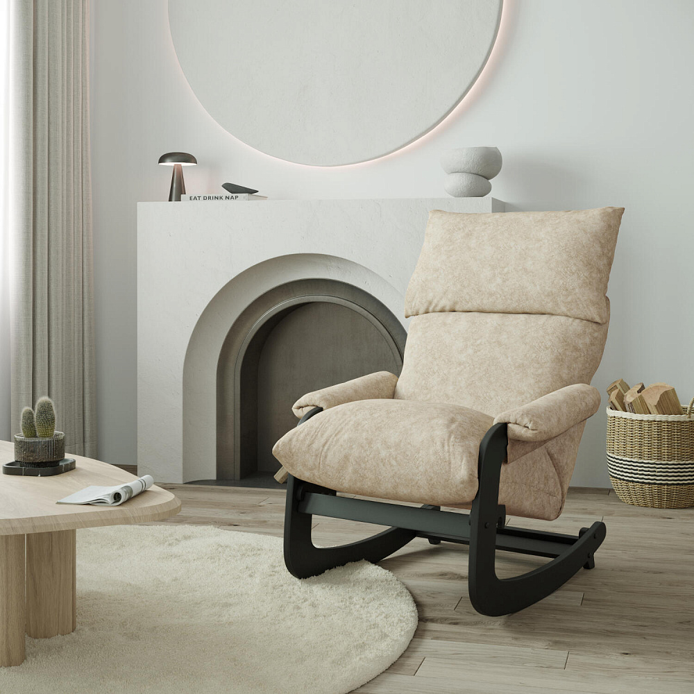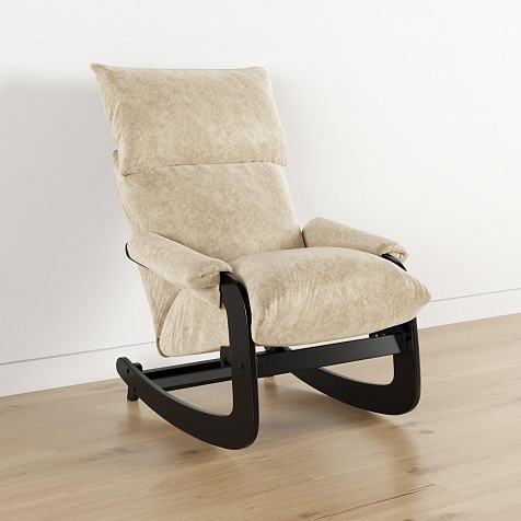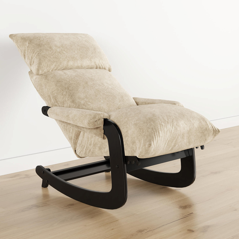 Мягкое кресло-качалка «Тиволи» с регулировкой угла наклона создаст уютное место для отдыха как в квартире, так и в загородном доме. Элегантный дизайн модели отличается объемными формами спинки и сиденья, компактными подлокотниками и лакированным каркасом. Обивка выполнена из плотного и приятного на ощупь велюра. За счет простого откидного механизма, спинка может принять полугоризонтальное положение для более комфортного отдыха.