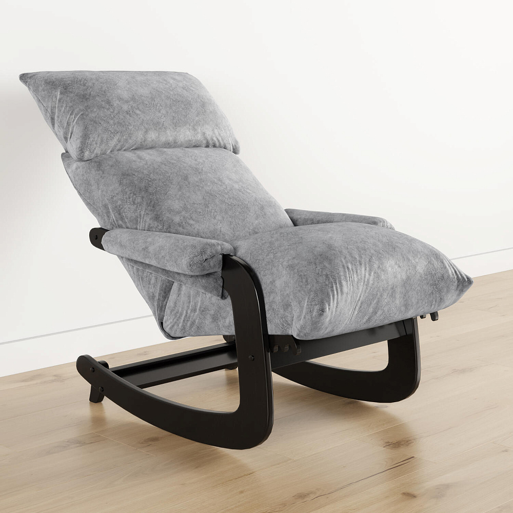 Мягкое кресло-качалка «Тиволи» с регулировкой угла наклона создаст уютное место для отдыха как в квартире, так и в загородном доме. Элегантный дизайн модели отличается объемными формами спинки и сиденья, компактными подлокотниками и лакированным каркасом. Обивка выполнена из плотного и приятного на ощупь велюра. За счет простого откидного механизма, спинка может принять полугоризонтальное положение для более комфортного отдыха.