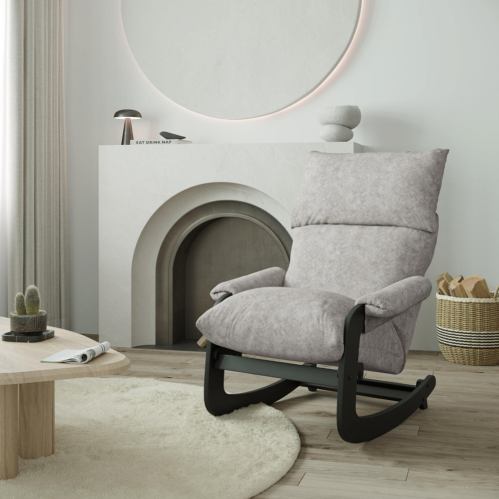 Мягкое кресло-качалка «Тиволи» с регулировкой угла наклона создаст уютное место для отдыха как в квартире, так и в загородном доме. Элегантный дизайн модели отличается объемными формами спинки и сиденья, компактными подлокотниками и лакированным каркасом. Обивка выполнена из плотного и приятного на ощупь велюра. За счет простого откидного механизма, спинка может принять полугоризонтальное положение для более комфортного отдыха.