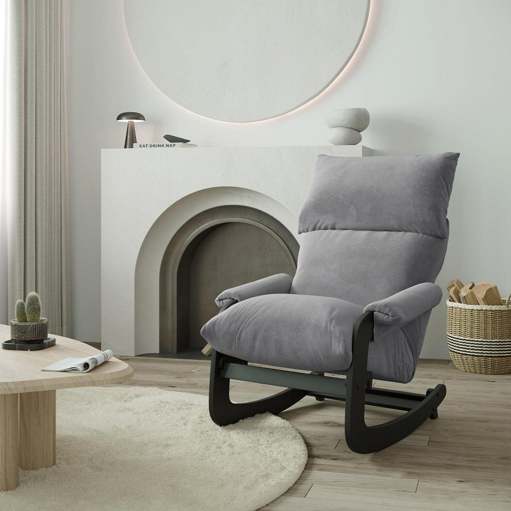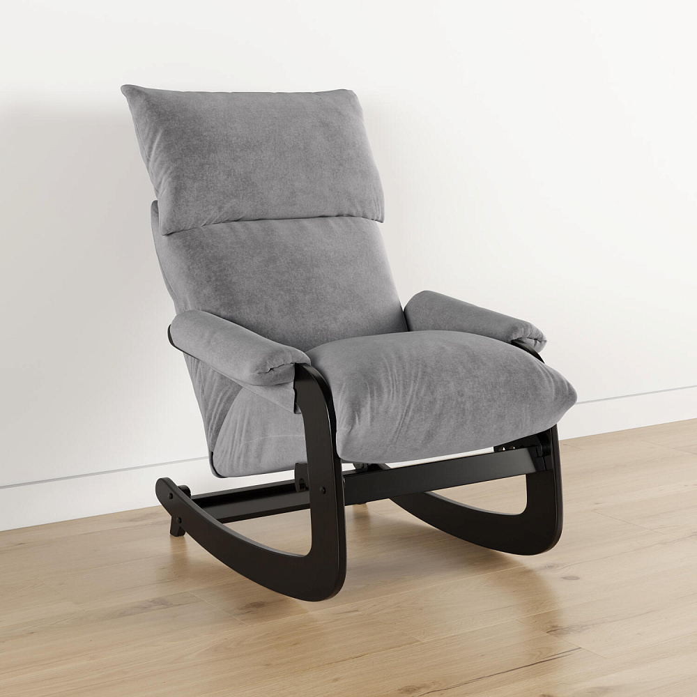 Мягкое кресло-качалка «Тиволи» с регулировкой угла наклона создаст уютное место для отдыха как в квартире, так и в загородном доме. Элегантный дизайн модели отличается объемными формами спинки и сиденья, компактными подлокотниками и лакированным каркасом. Обивка выполнена из плотного и приятного на ощупь велюра. За счет простого откидного механизма, спинка может принять полугоризонтальное положение для более комфортного отдыха.