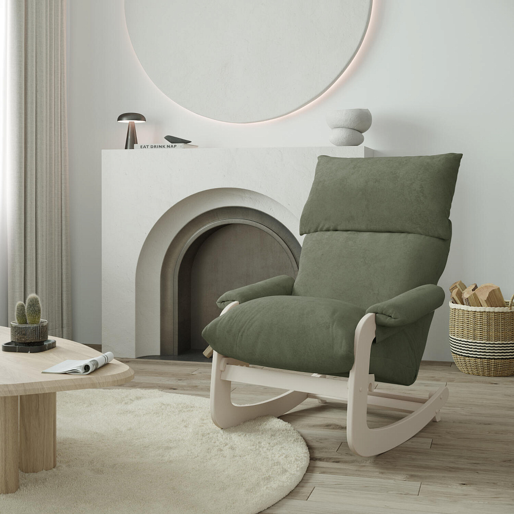 Мягкое кресло-качалка «Тиволи» с регулировкой угла наклона создаст уютное место для отдыха как в квартире, так и в загородном доме. Элегантный дизайн модели отличается объемными формами спинки и сиденья, компактными подлокотниками и лакированным каркасом. Обивка выполнена из приятного на ощупь велюра. За счет простого откидного механизма, спинка может принять полугоризонтальное положение для более комфортного отдыха.