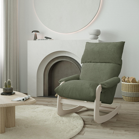 Оснащено механизмом качания. Достаточно поднять фиксирующую планку и кресло трансформируется в качалку.