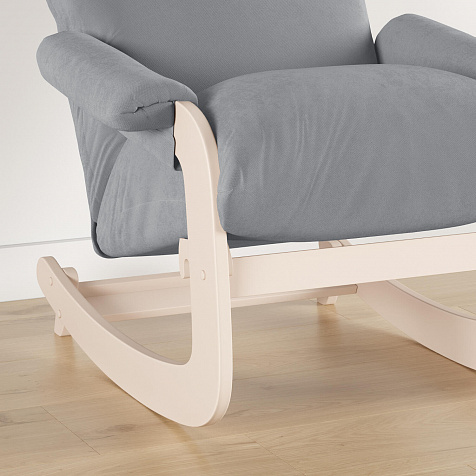 Оснащено механизмом качания. Достаточно поднять фиксирующую планку и кресло трансформируется в качалку.