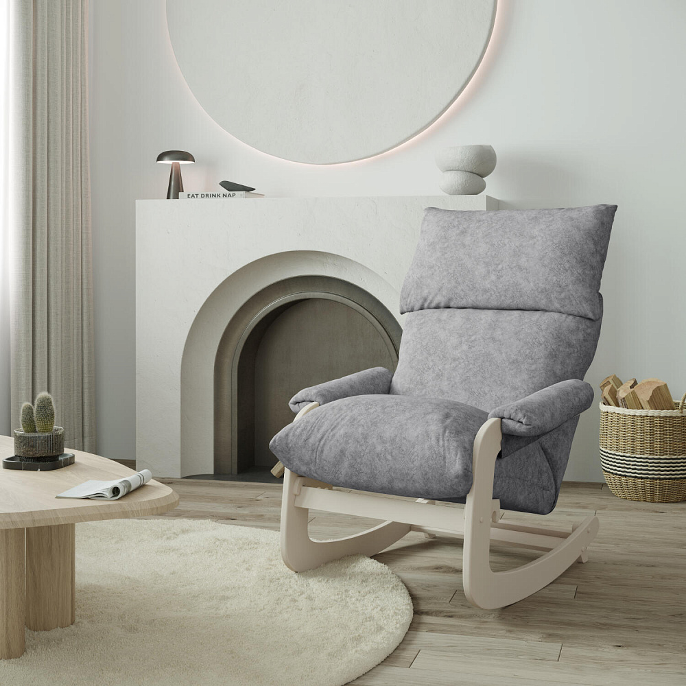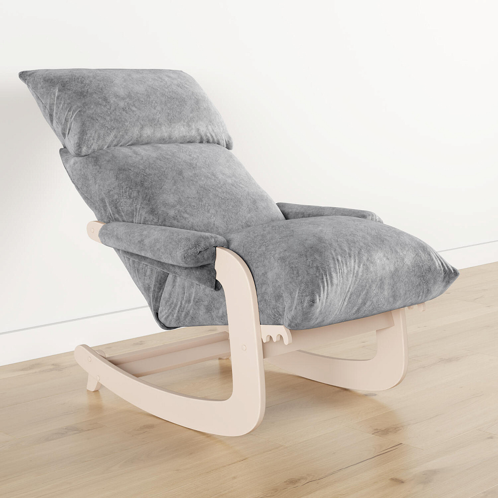Мягкое кресло-качалка «Тиволи» с регулировкой угла наклона создаст уютное место для отдыха как в квартире, так и в загородном доме. Элегантный дизайн модели отличается объемными формами спинки и сиденья, компактными подлокотниками и лакированным каркасом. Обивка выполнена из плотного и приятного на ощупь велюра. За счет простого откидного механизма, спинка может принять полугоризонтальное положение для более комфортного отдыха.