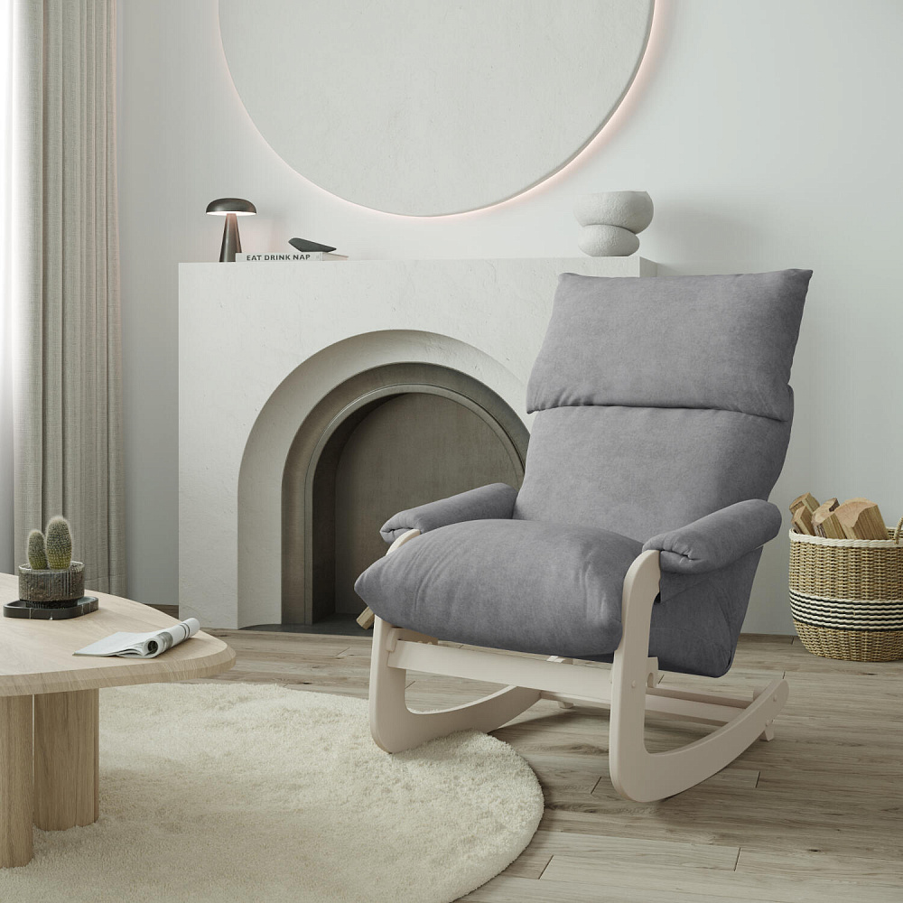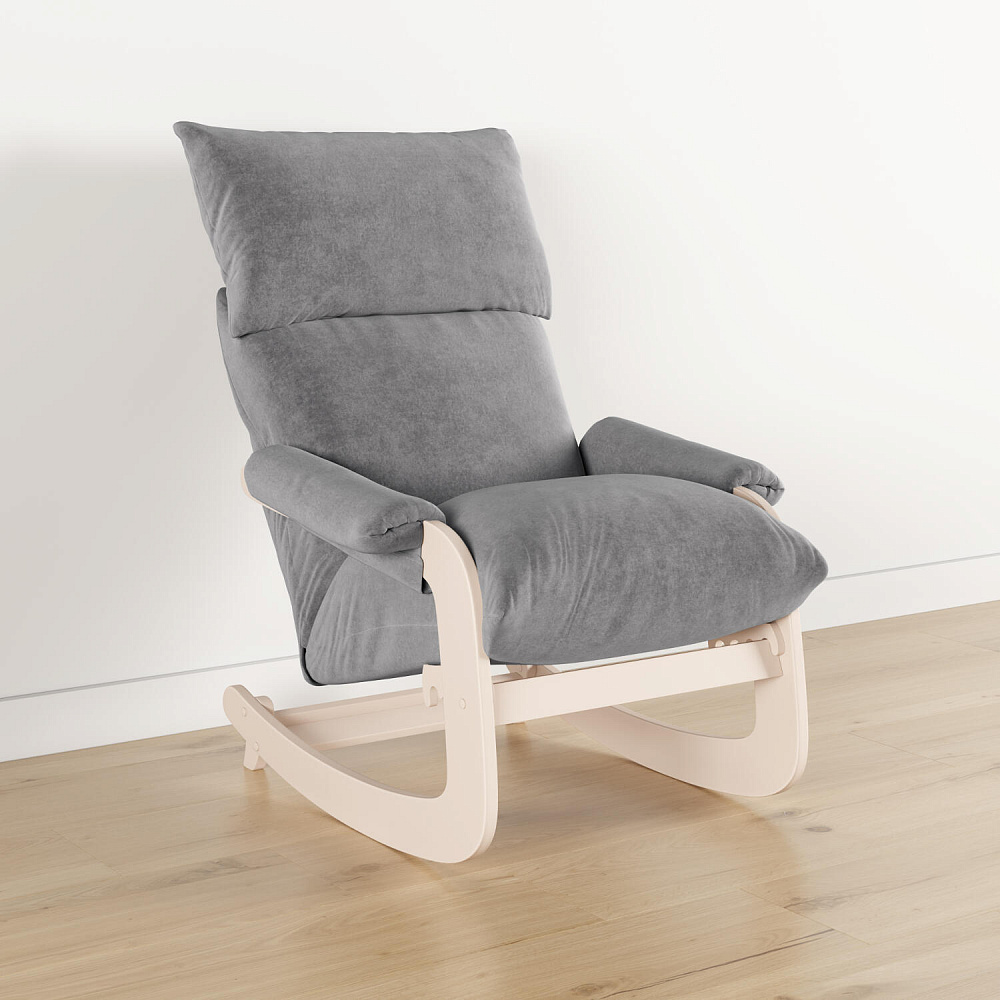 Мягкое кресло-качалка «Тиволи» с регулировкой угла наклона создаст уютное место для отдыха как в квартире, так и в загородном доме. Элегантный дизайн модели отличается объемными формами спинки и сиденья, компактными подлокотниками и лакированным каркасом. Обивка выполнена из плотного и приятного на ощупь велюра. За счет простого откидного механизма, спинка может принять полугоризонтальное положение для более комфортного отдыха.