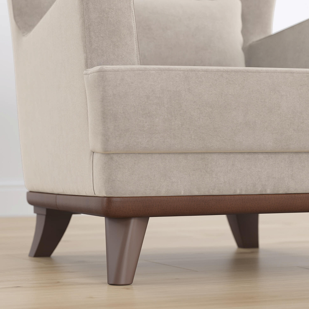 Обивка из велюра. Визуальная схожесть с замшевой текстурой смотрится элегантно. Бархатистая ткань приятная на ощупь, отличается высокой прочностью и устойчивостью к истиранию.