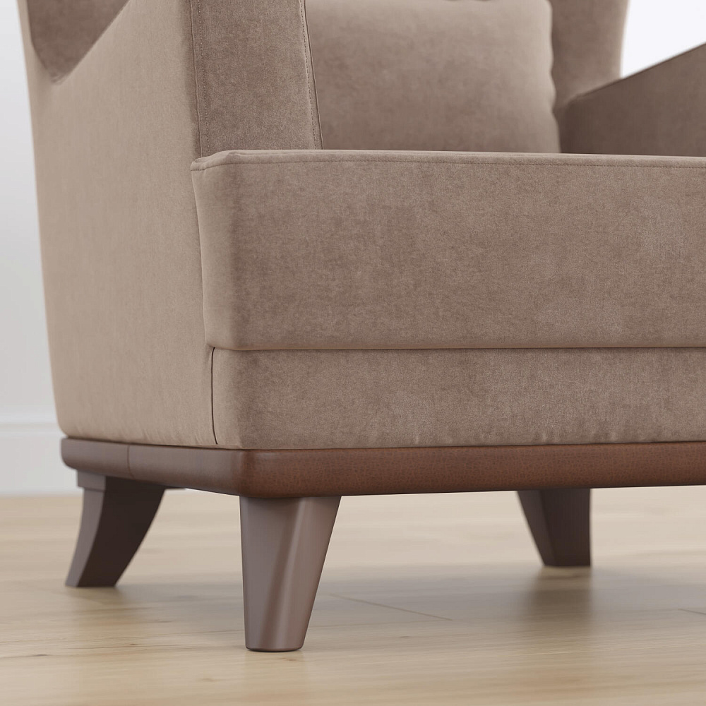 Обивка из велюра. Визуальная схожесть с замшевой текстурой смотрится элегантно. Бархатистая ткань приятная на ощупь, отличается высокой прочностью и устойчивостью к истиранию.