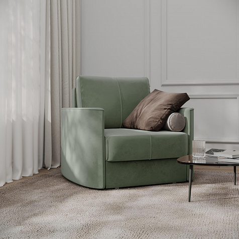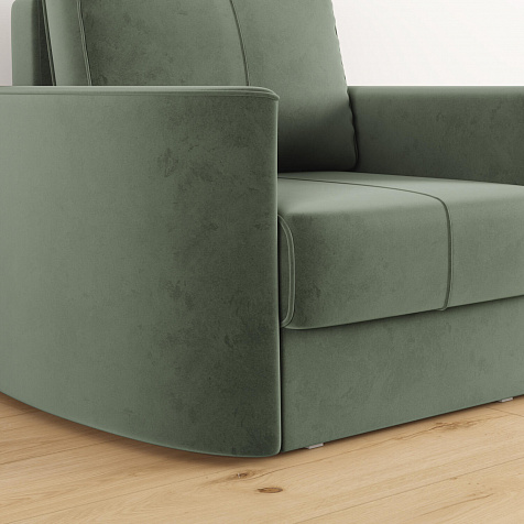 Кресло «Амми» — это идеальное сочетание надёжности, простоты и комфорта, подходит для ежедневного использования. Прямая строчка на сиденье и задней подушке создает завершённый образ, придает модели геометричности. Кресло сочетает в себе полноценное односпальное место, которое экономит пространство за счет особенности раскладного механизма.