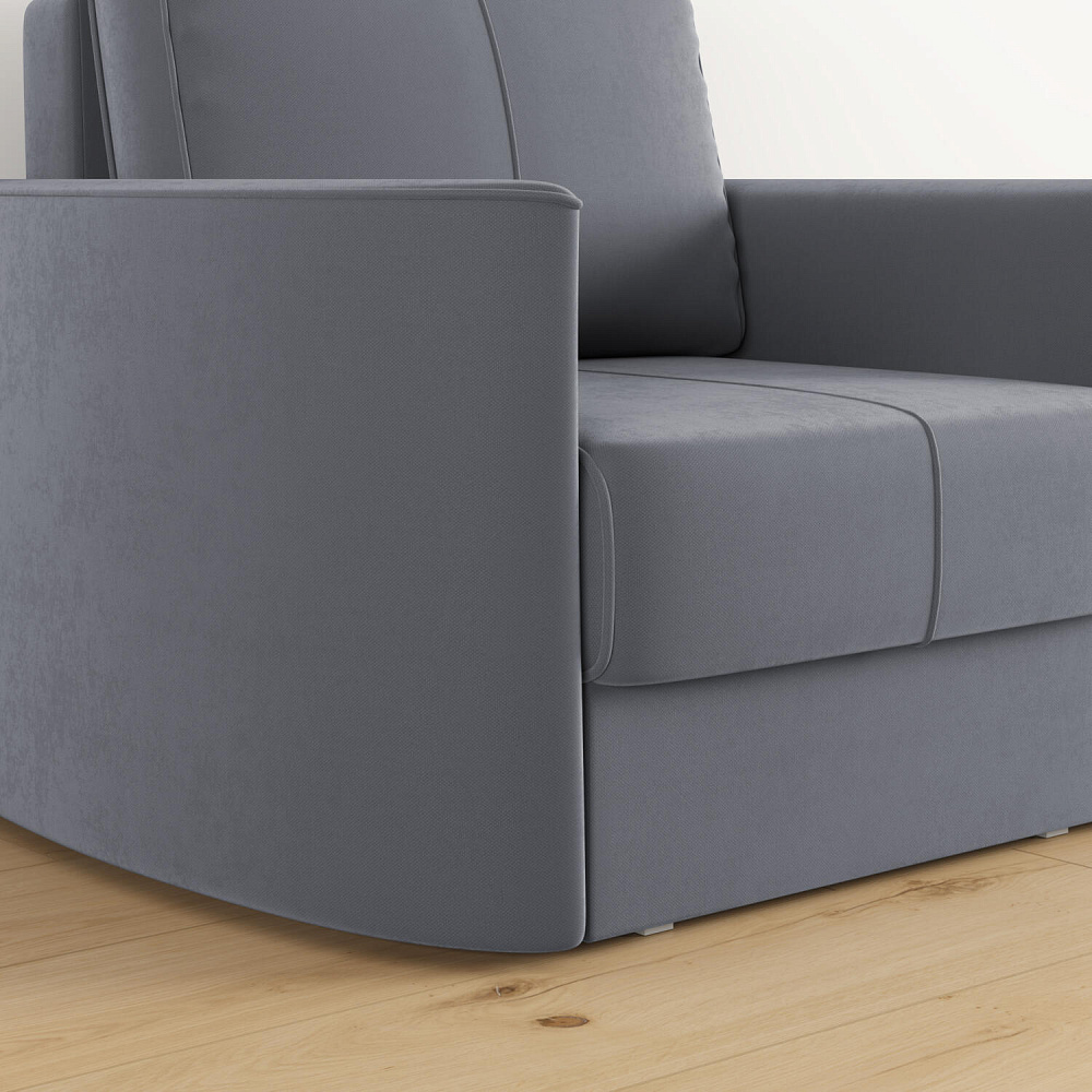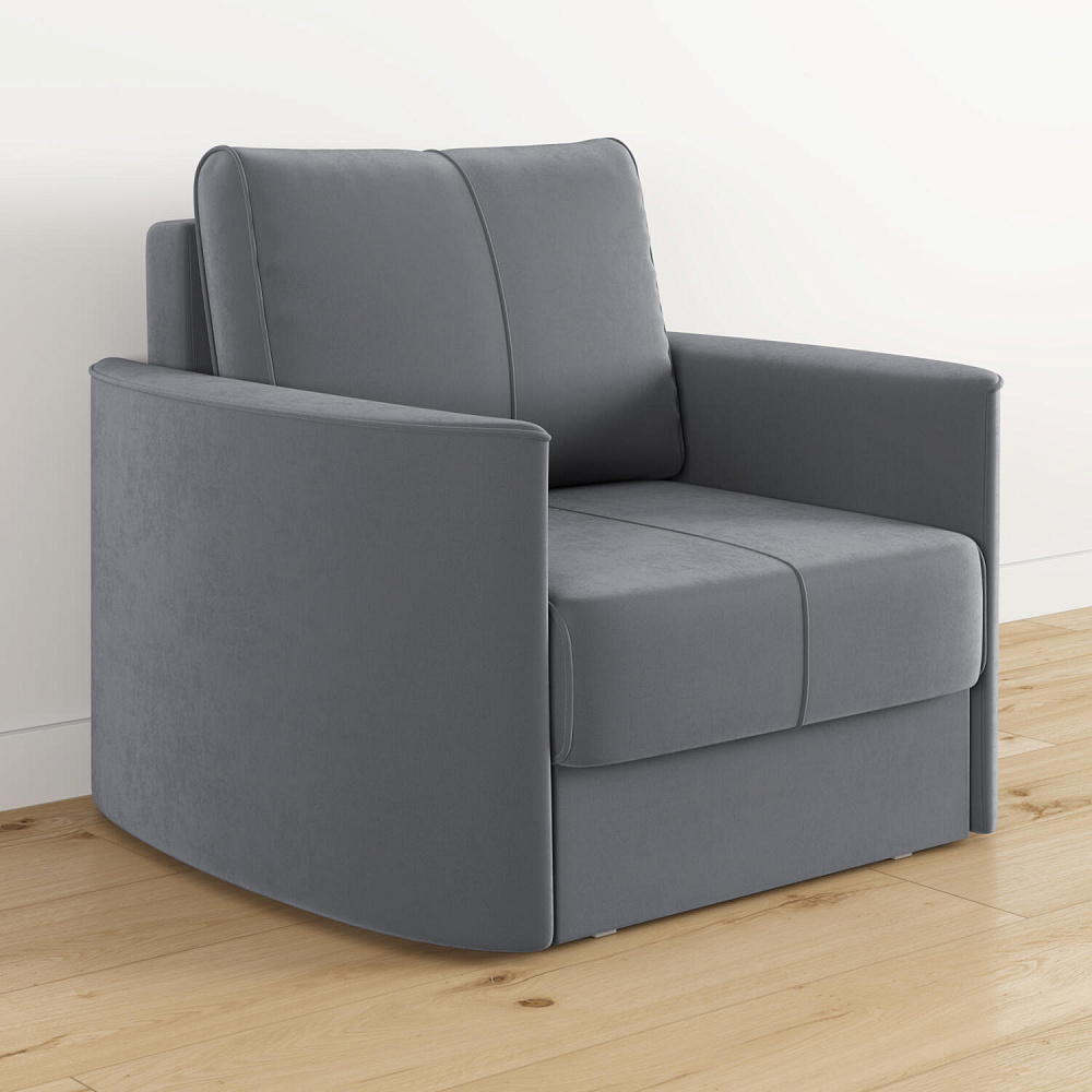 Кресло «Амми» — это идеальное сочетание надёжности, простоты и комфорта, подходит для ежедневного использования. Прямая строчка на сиденье и задней подушке создает завершённый образ, придает модели геометричности. Кресло сочетает в себе полноценное односпальное место, которое экономит пространство за счет особенности раскладного механизма.