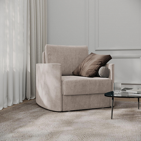 Кресло «Амми» — это идеальное сочетание надёжности, простоты и комфорта, подходит для ежедневного использования. Прямая строчка на сиденье и задней подушке создает завершённый образ, придает модели геометричности. Кресло сочетает в себе полноценное односпальное место, которое экономит пространство за счет особенности раскладного механизма.