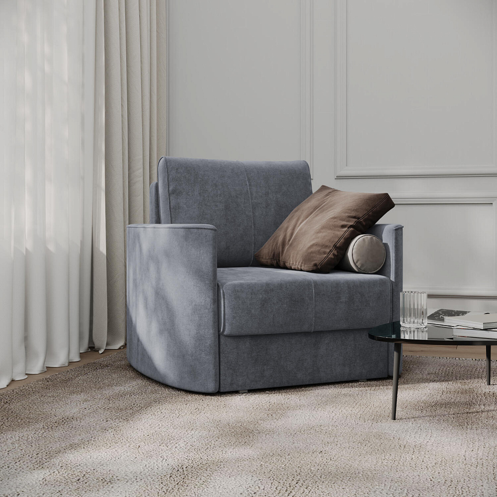 Кресло «Амми» — это идеальное сочетание надёжности, простоты и комфорта, подходит для ежедневного использования. Прямая строчка на сиденье и задней подушке создает завершённый образ, придает модели геометричности. Кресло сочетает в себе полноценное односпальное место, которое экономит пространство за счет особенности раскладного механизма.