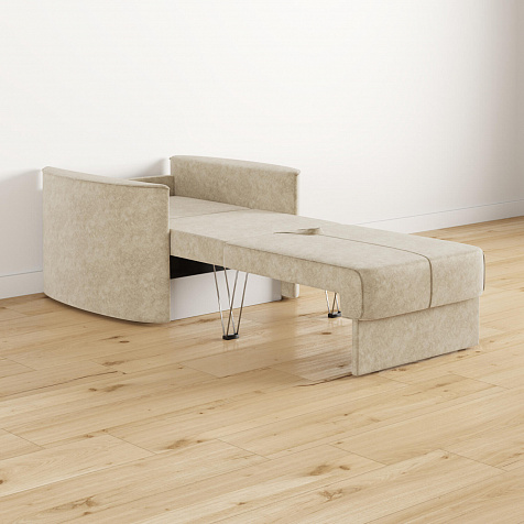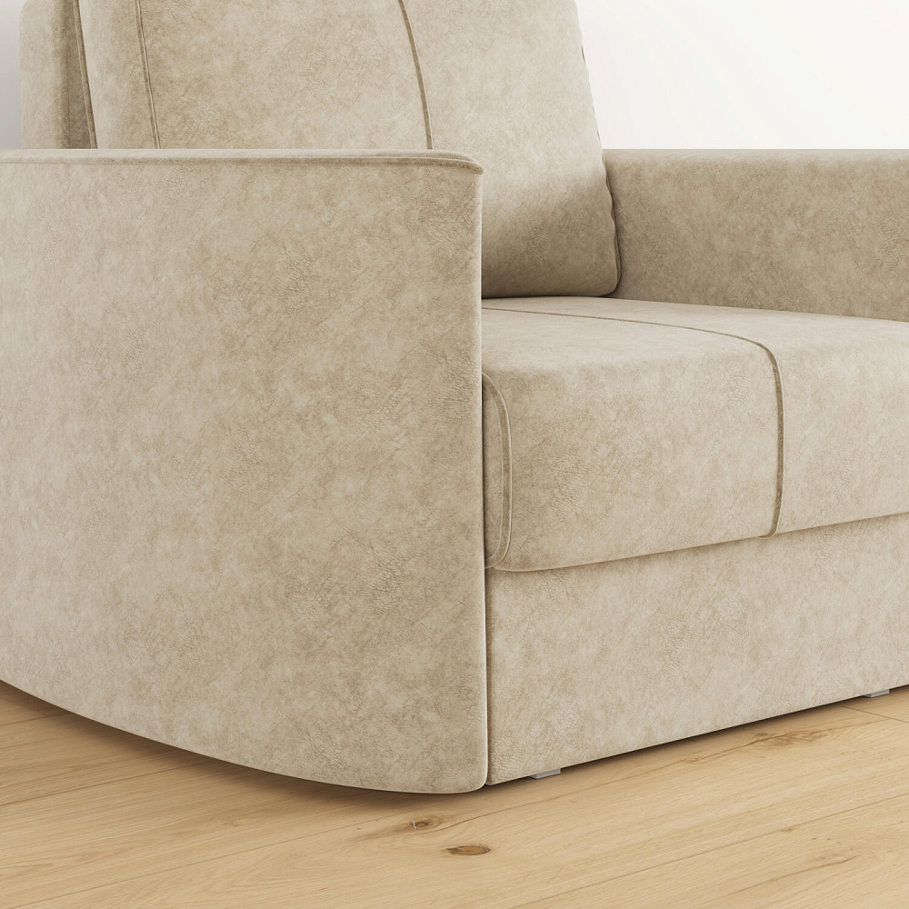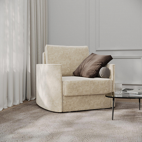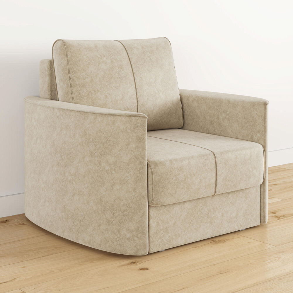 Кресло «Амми» — это идеальное сочетание надёжности, простоты и комфорта, подходит для ежедневного использования. Прямая строчка на сиденье и задней подушке создает завершённый образ, придает модели геометричности. Кресло сочетает в себе полноценное односпальное место, которое экономит пространство за счет особенности раскладного механизма.