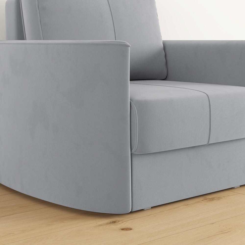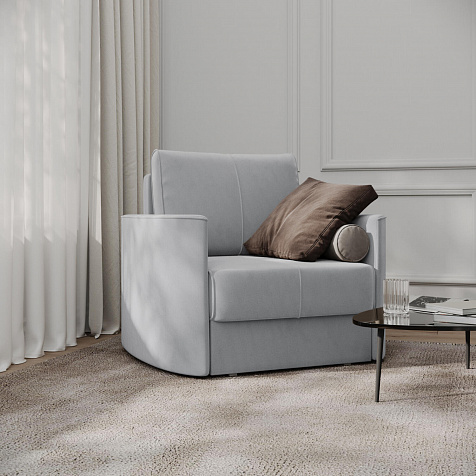 Кресло «Амми» — это идеальное сочетание надёжности, простоты и комфорта, подходит для ежедневного использования. Прямая строчка на сиденье и задней подушке создает завершённый образ, придает модели геометричности. Кресло сочетает в себе полноценное односпальное место, которое экономит пространство за счет особенности раскладного механизма.