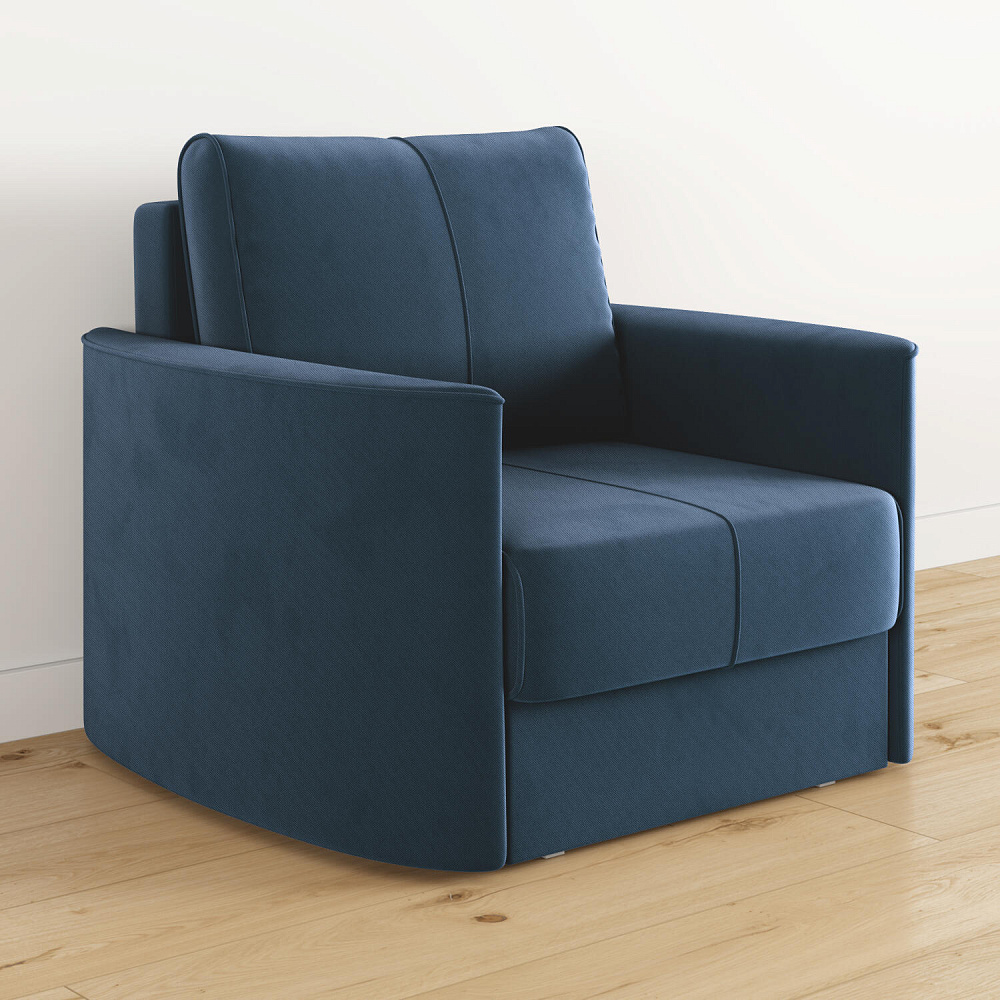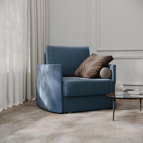 Кресло «Амми» — это идеальное сочетание надёжности, простоты и комфорта, подходит для ежедневного использования. Прямая строчка на сиденье и задней подушке создает завершённый образ, придает модели геометричности. Кресло сочетает в себе полноценное односпальное место, которое экономит пространство за счет особенности раскладного механизма.