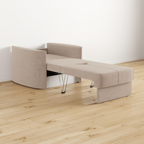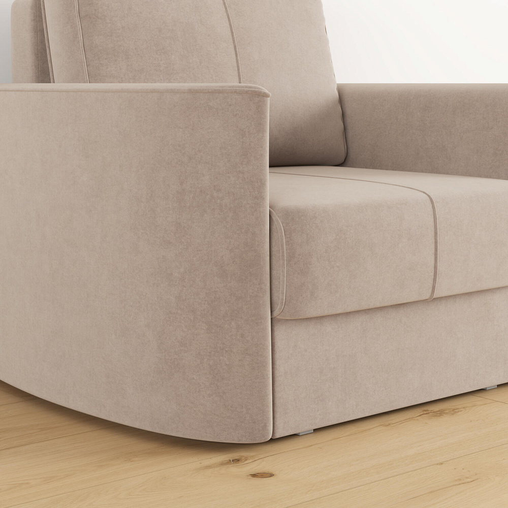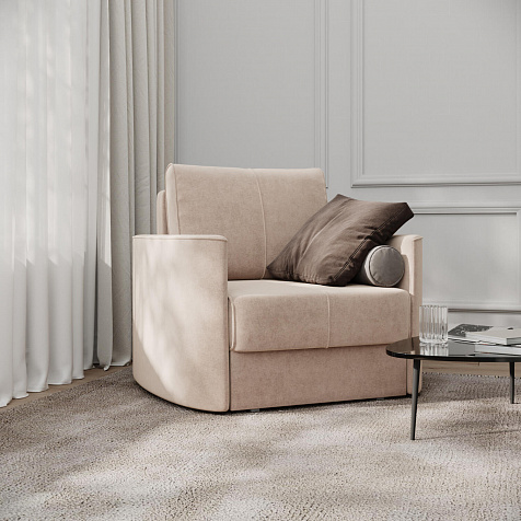 Кресло «Амми» — это идеальное сочетание надёжности, простоты и комфорта, подходит для ежедневного использования. Прямая строчка на сиденье и задней подушке создает завершённый образ, придает модели геометричности. Кресло сочетает в себе полноценное односпальное место, которое экономит пространство за счет особенности раскладного механизма.