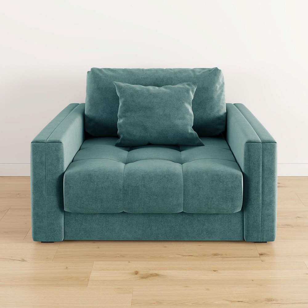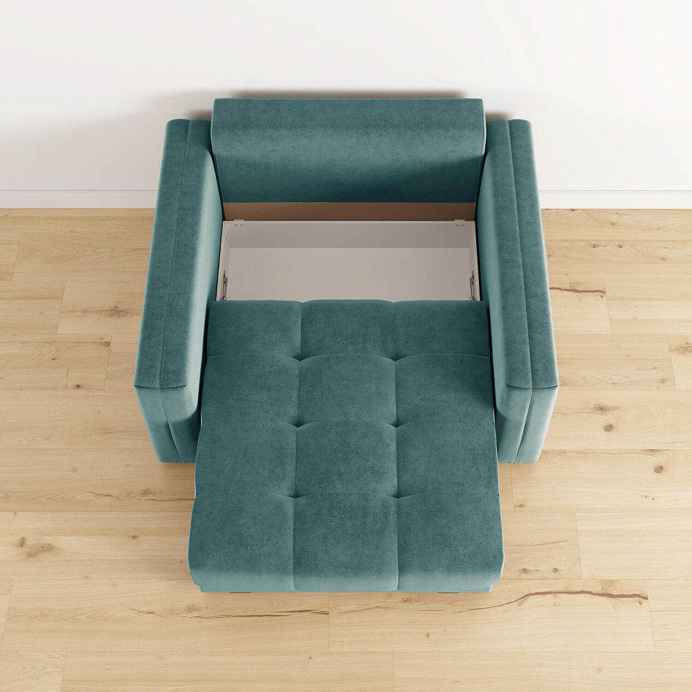 Обивка из велюра. Обивка кресла-кровати выполнена из стильной и приятной на ощупь ткани, которая отлично пропускает воздух, хорошо тянется, устойчива к истиранию и выцветанию.