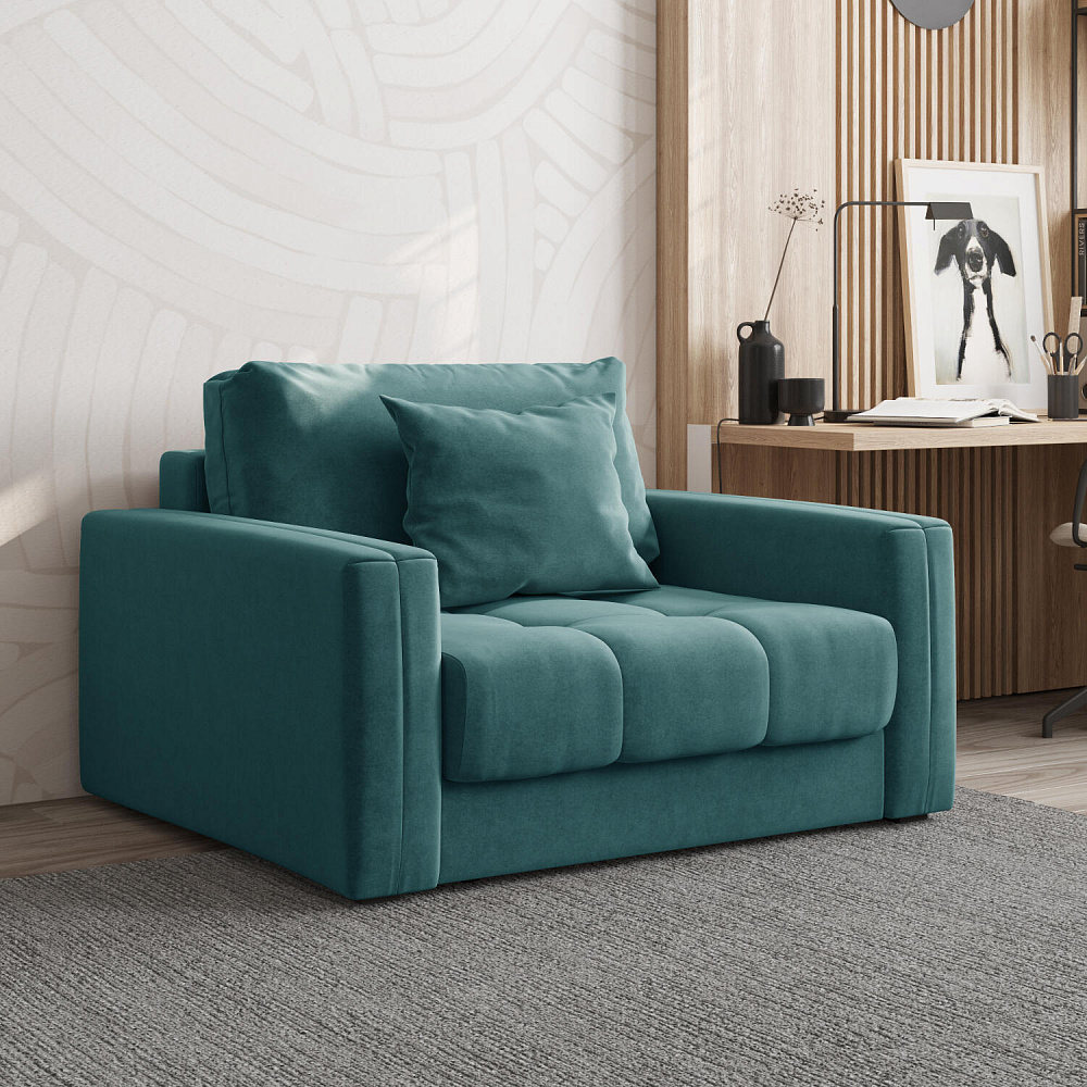 Кресло-кровать «Дензел» — лучшее сочетание компактности и функциональности в современном стиле. Кресло обладает глубокой посадкой, а подушки позволяют создать удобное место для отдыха. Спинка модели выполнена в обивочной ткани, что позволяет использовать кресло-кровать для зонирования комнаты.