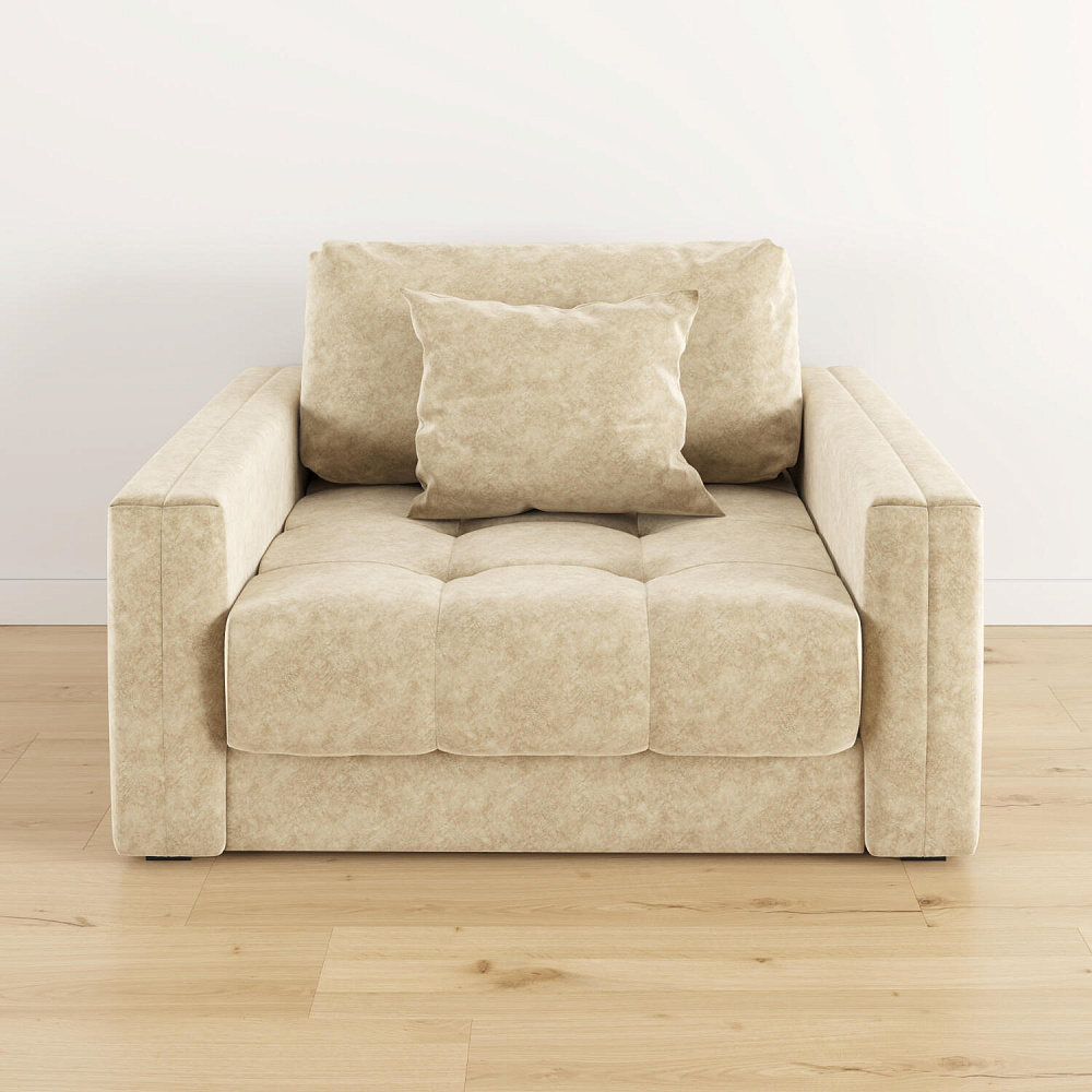 Кресло-кровать «Дензел» — лучшее сочетание компактности и функциональности в современном стиле. Кресло обладает глубокой посадкой, а подушки позволяют создать удобное место для отдыха. Спинка модели выполнена в обивочной ткани, что позволяет использовать кресло-кровать для зонирования комнаты.