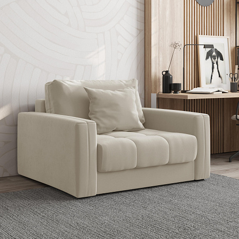 Кресло-кровать «Дензел» — лучшее сочетание компактности и функциональности в современном стиле. Кресло обладает глубокой посадкой, а подушки позволяют создать удобное место для отдыха. Спинка модели выполнена в обивочной ткани, что позволяет использовать кресло-кровать для зонирования комнаты.