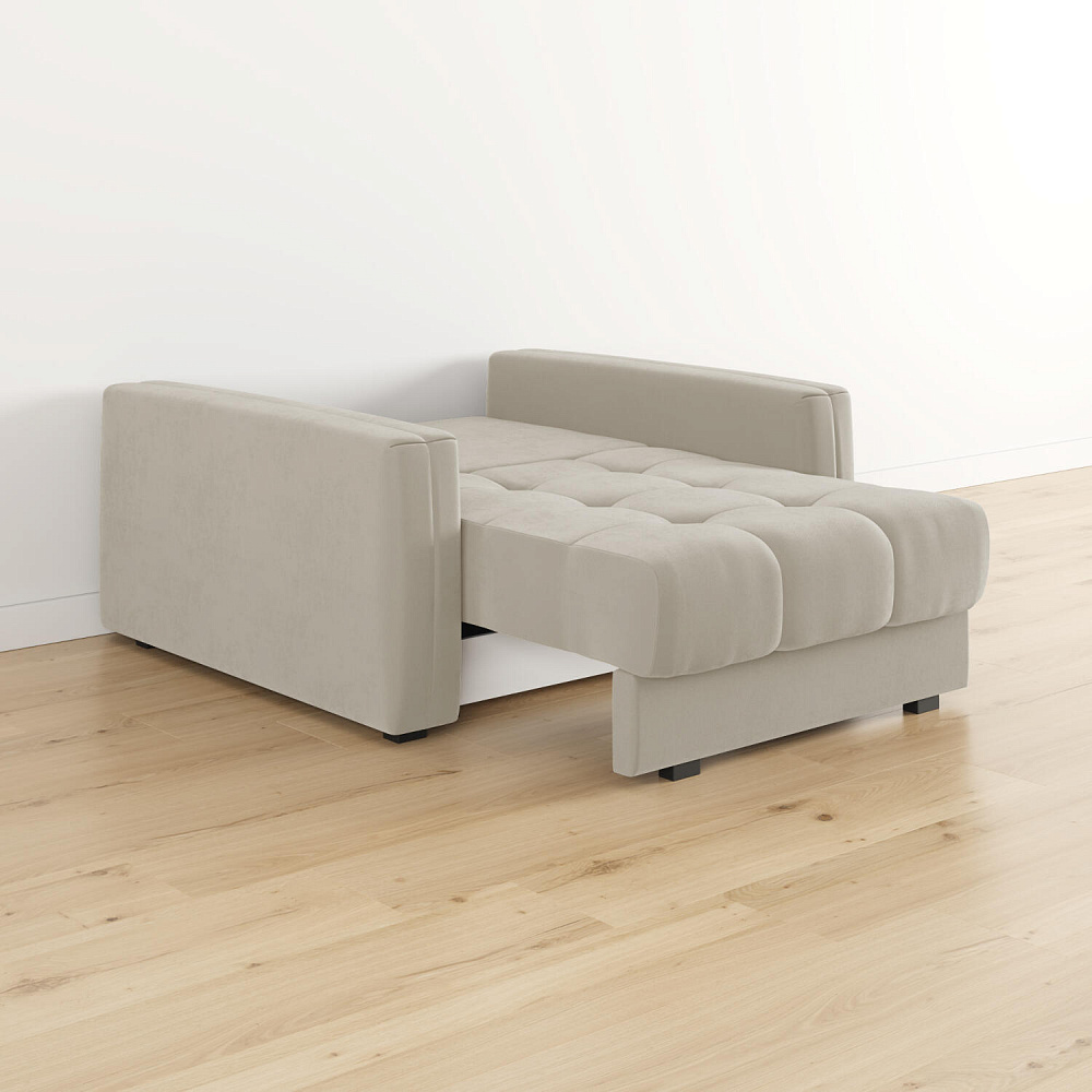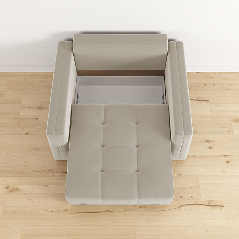 Обивка из велюра. Обивка кресла-кровати выполнена из стильной и приятной на ощупь ткани, которая отлично пропускает воздух, хорошо тянется, устойчива к истиранию и выцветанию.