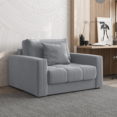 Кресло-кровать «Дензел» — лучшее сочетание компактности и функциональности в современном стиле. Кресло обладает глубокой посадкой, а подушки позволяют создать удобное место для отдыха. Спинка модели выполнена в обивочной ткани, что позволяет использовать кресло-кровать для зонирования комнаты.