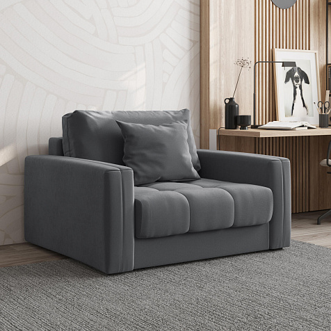 Кресло-кровать «Дензел» — лучшее сочетание компактности и функциональности в современном стиле. Кресло обладает глубокой посадкой, а подушки позволяют создать удобное место для отдыха. Спинка модели выполнена в обивочной ткани, что позволяет использовать кресло-кровать для зонирования комнаты.