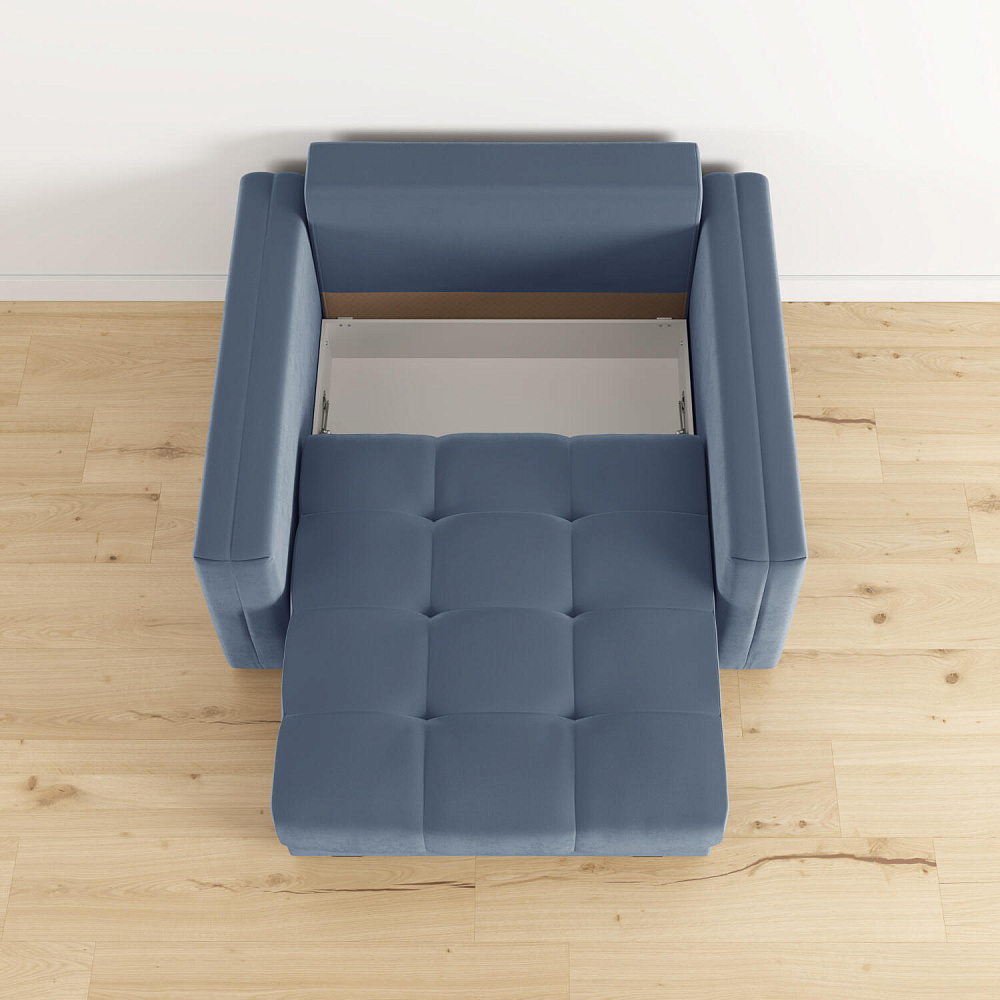 Обивка из велюра. Обивка кресла-кровати выполнена из стильной и приятной на ощупь ткани, которая отлично пропускает воздух, хорошо тянется, устойчива к истиранию и выцветанию.