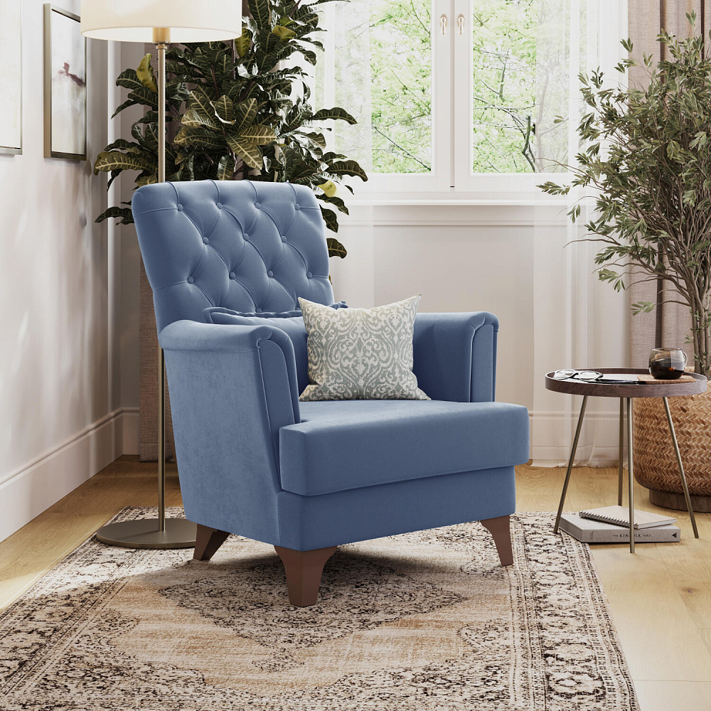 Кресло «Холли» подойдёт тем, кто ищет классику в современном видении. С помощью кресла можно организовать уютный уголок для чтения. А если поставить 2 и более кресел рядом, то получится идеальная зона отдыха в квартире или загородном доме.